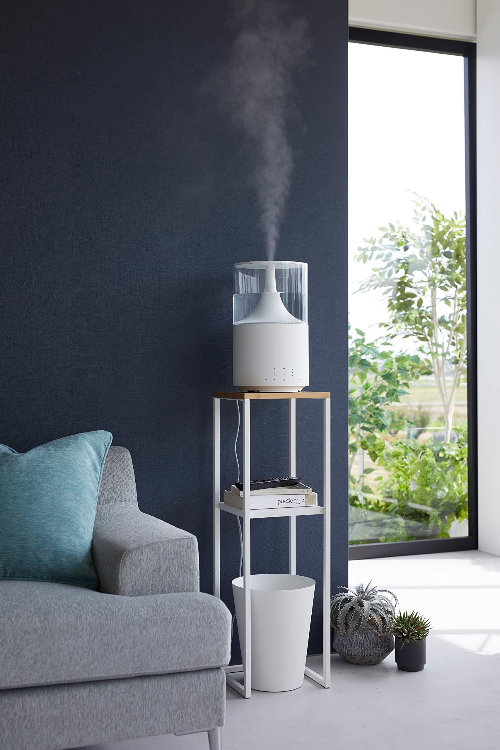 高い位置に加湿器を置くことで、放出されたミストが気化しやすくなり、効率的に加湿ができる加湿器スタンド。