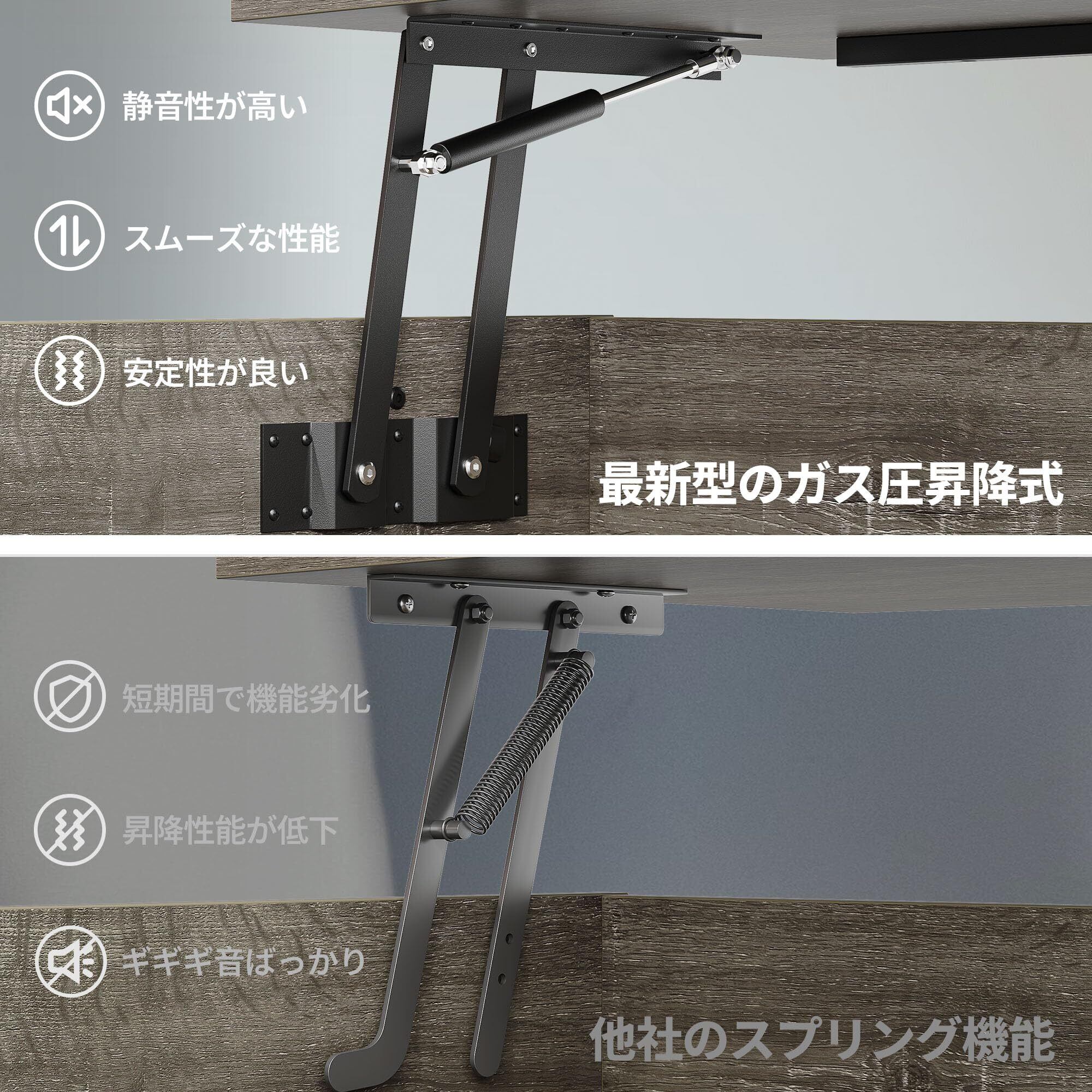 【静かにスムーズな昇降システムを実現】 Bestier出品のリフティングテーブルには、操作中に静音性重視し、スムーズでシームレスな昇降を実現するガスシリンダーが装備されています。さらに、指を挟まないように、テーブルトップと本体の間にスペースを設け、安全性に配慮したデザインになっています。