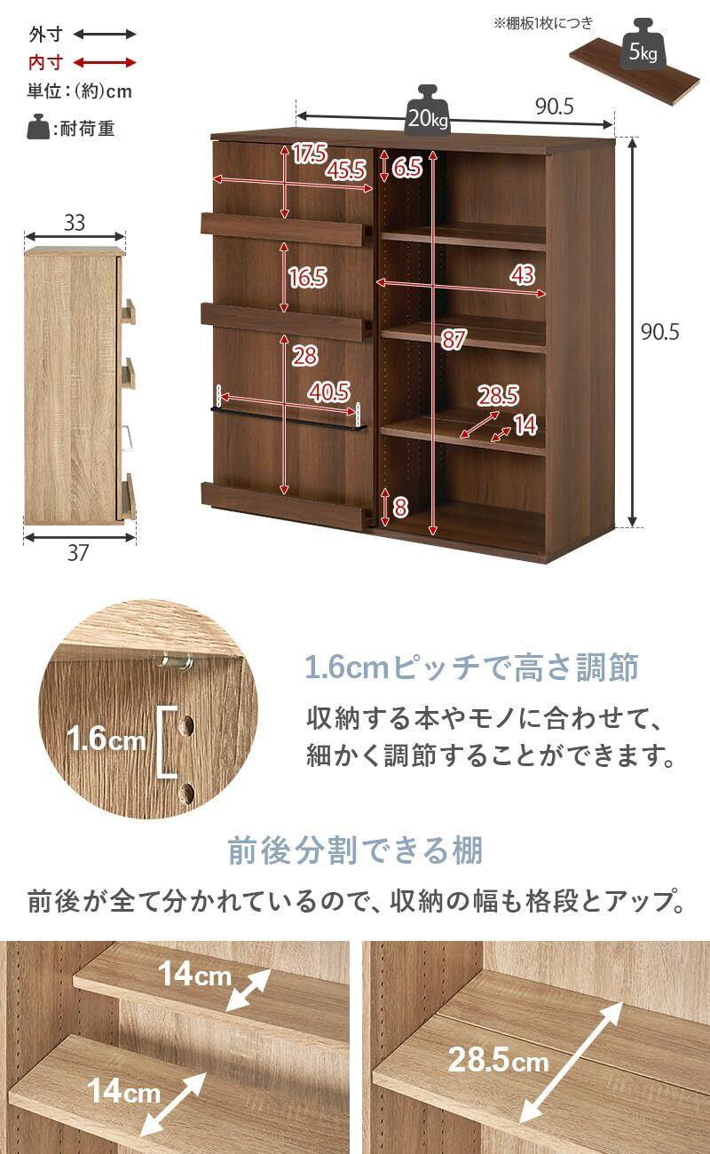 【サイズ(約)】幅90.5×奥行37×高さ90.5cm / 可動棚サイズ(1枚あたり):奥行14×厚み1.5cm【材質】プリント紙化粧パーティクルボード
