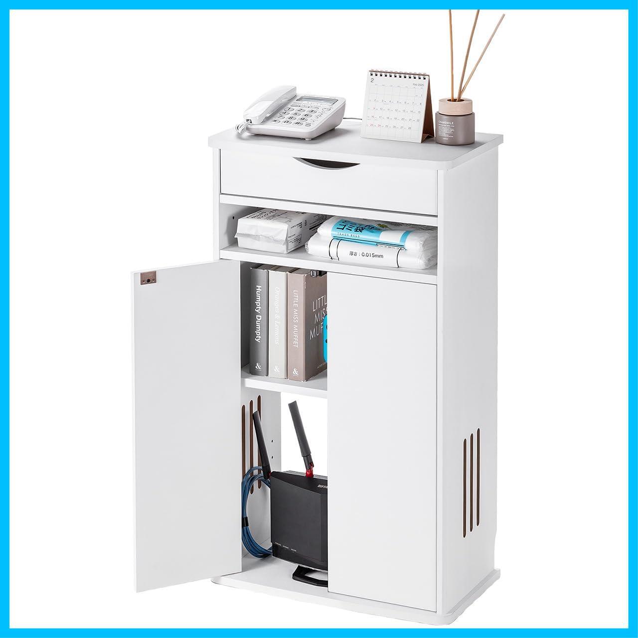 サンワダイレクト ルーター収納ボックス 電話台 木製 引き出し付 スリム 幅48×奥行27×高さ83cm ルーター モデム 配線隠し 収納 ホワイト 200-CB064W