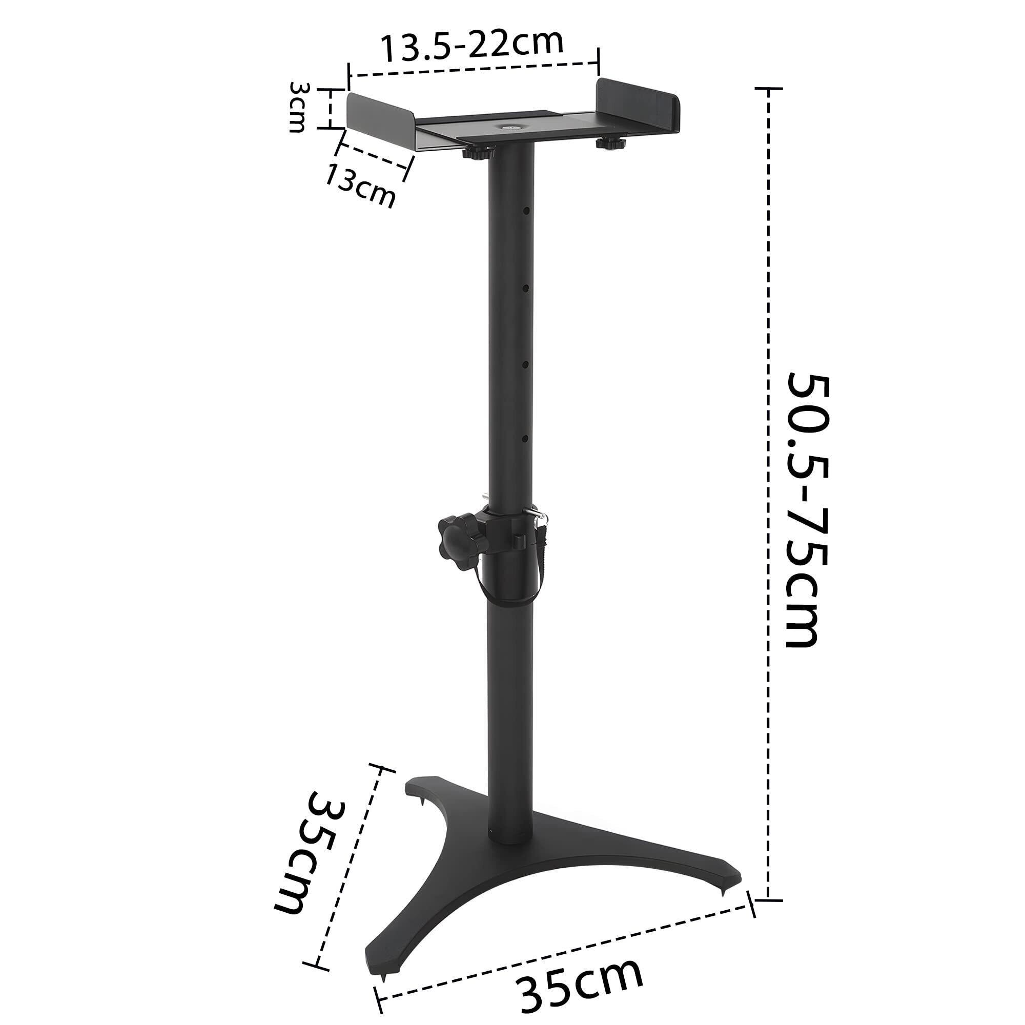 【製品情報】50.5cm〜75cmまでの高さ調整が可能、天板奥行13 cm x幅(13.5〜22)cm、ほぼすべてのスピーカー、材質:金属、荷重能力:15 kg