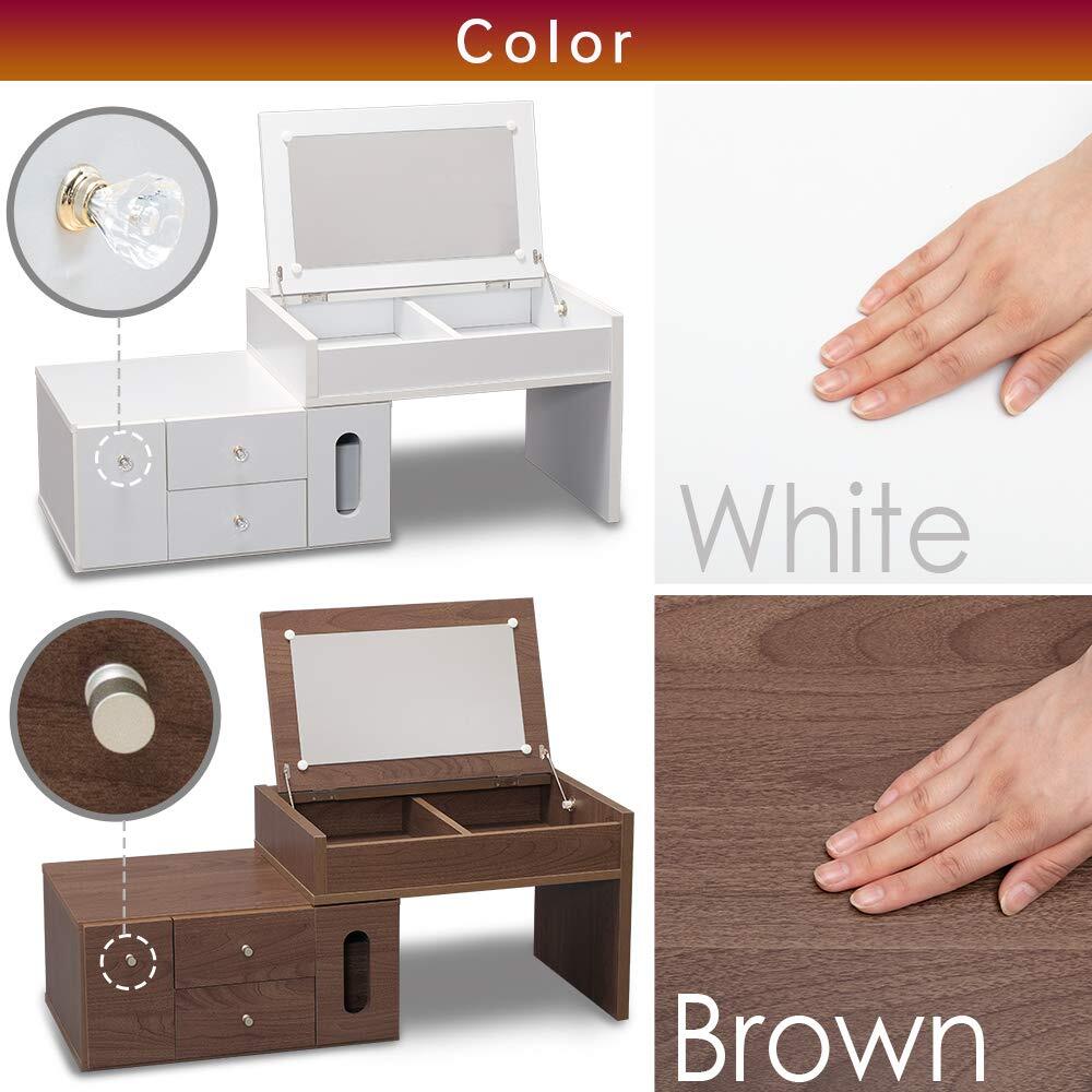 アイリスプラザ 鏡 ドレッサー 白 ロータイプ コンパクト 化粧台 鏡台 メイク台 幅伸縮可 収納 大容量 収納デスク 机 ローデスク 幅62.6~105×奥行約44×高さ約41㎝ ホワイト | Lulu