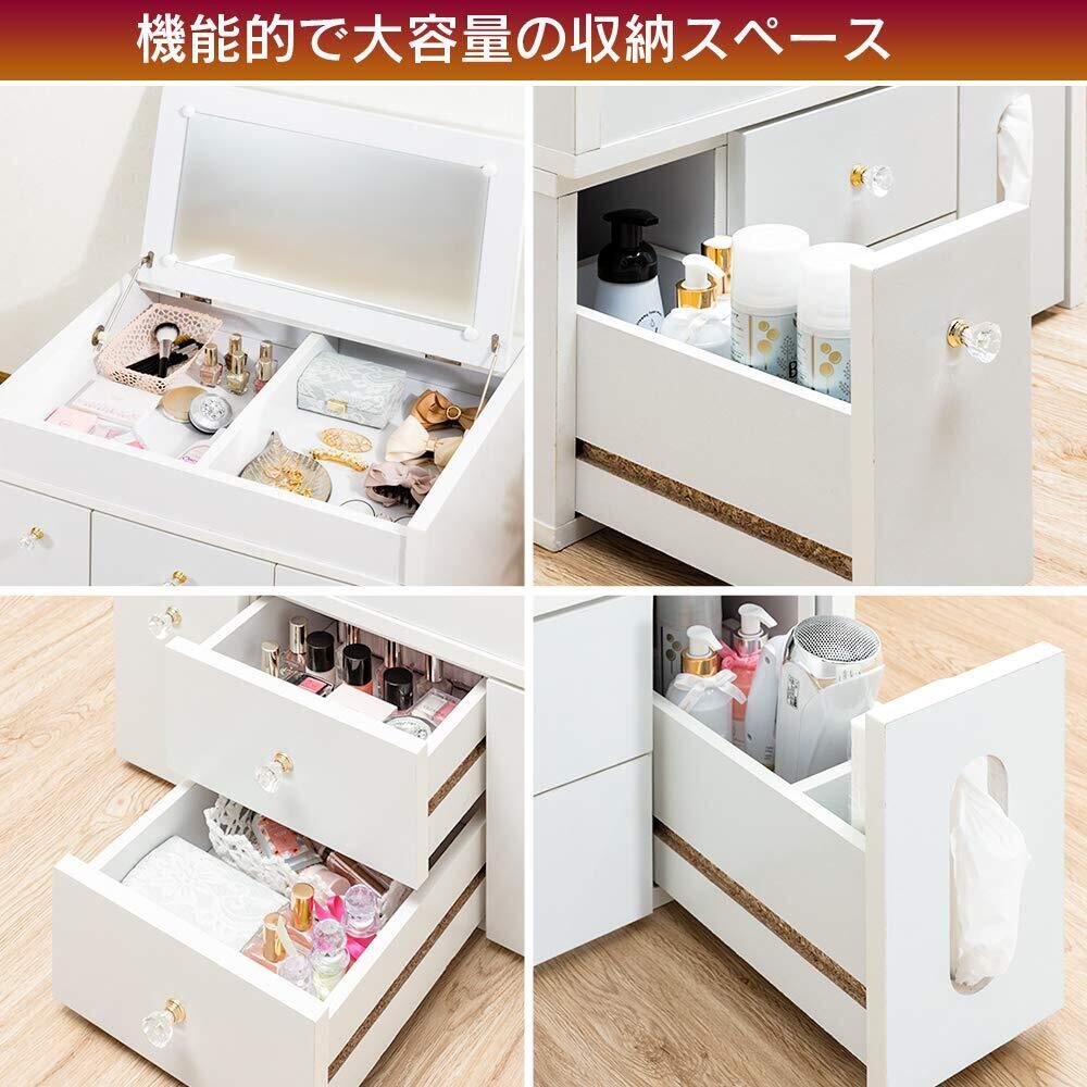 【大容量の収納力】化粧品やアクセサリーなどをスマートに収納できる大容量の引き出しを備えています。日常的に使用するアイテムを効率よく整理整頓でき、すっきりとした使いやすい環境を実現します。