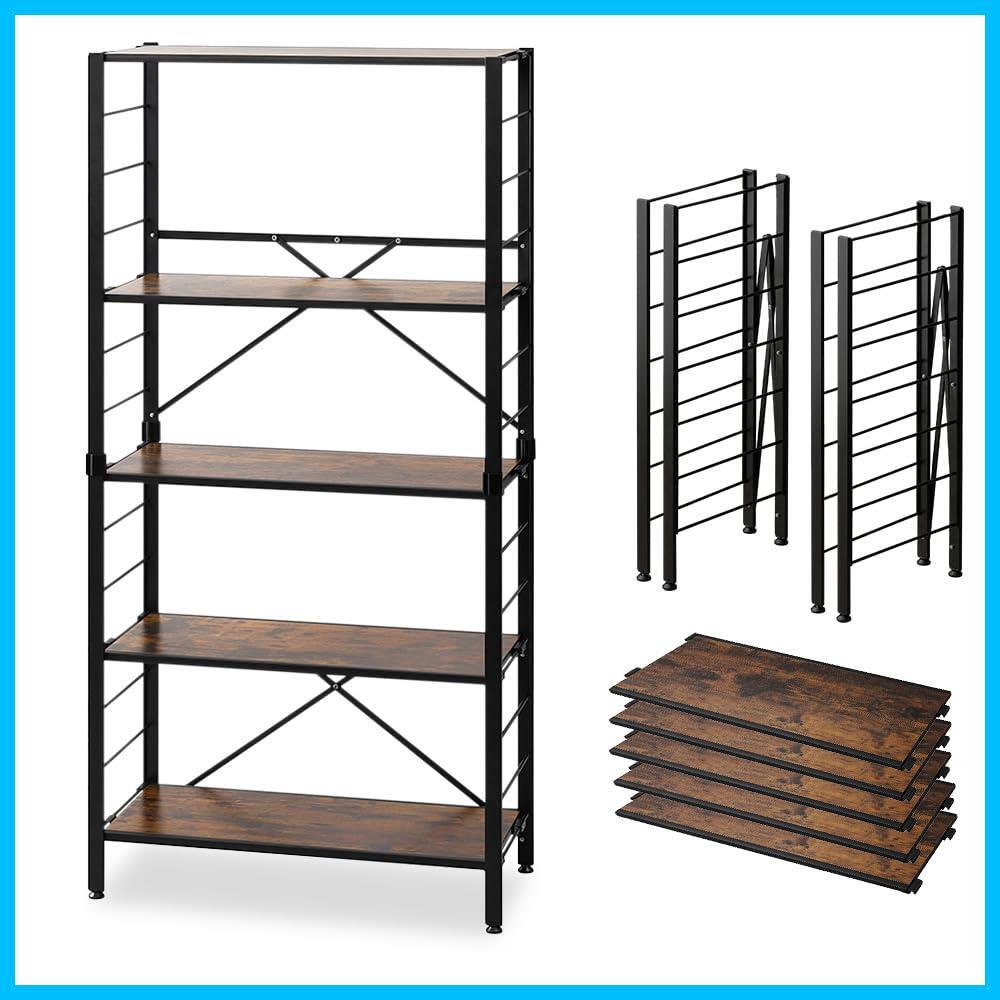 【広げるだけで組立簡単】アイリスオーヤマ スチールラック 棚板の連結で使い方は自由自在 連結 可動棚 オープンシェルフ ラック 幅:76cm 5段 分解可能 ヴィンテージブラウン KRSR-5 | Lulu