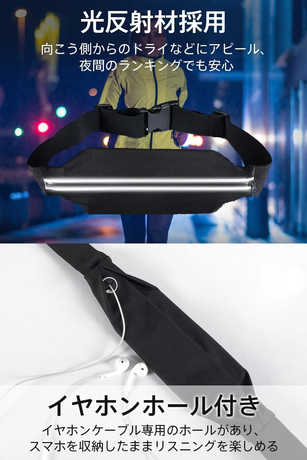 【新設計 · 超軽量】ランニング ポーチ 揺れない 超薄型 大容量 防水 伸縮 光反射材付き イヤホンホール付き 男女兼用 キー/カード/小銭入れ ウエストポーチ ウォーキング/ジョギング/マラソン/遠足 登山用 iPhone&Androidスマホ対応 (Black)