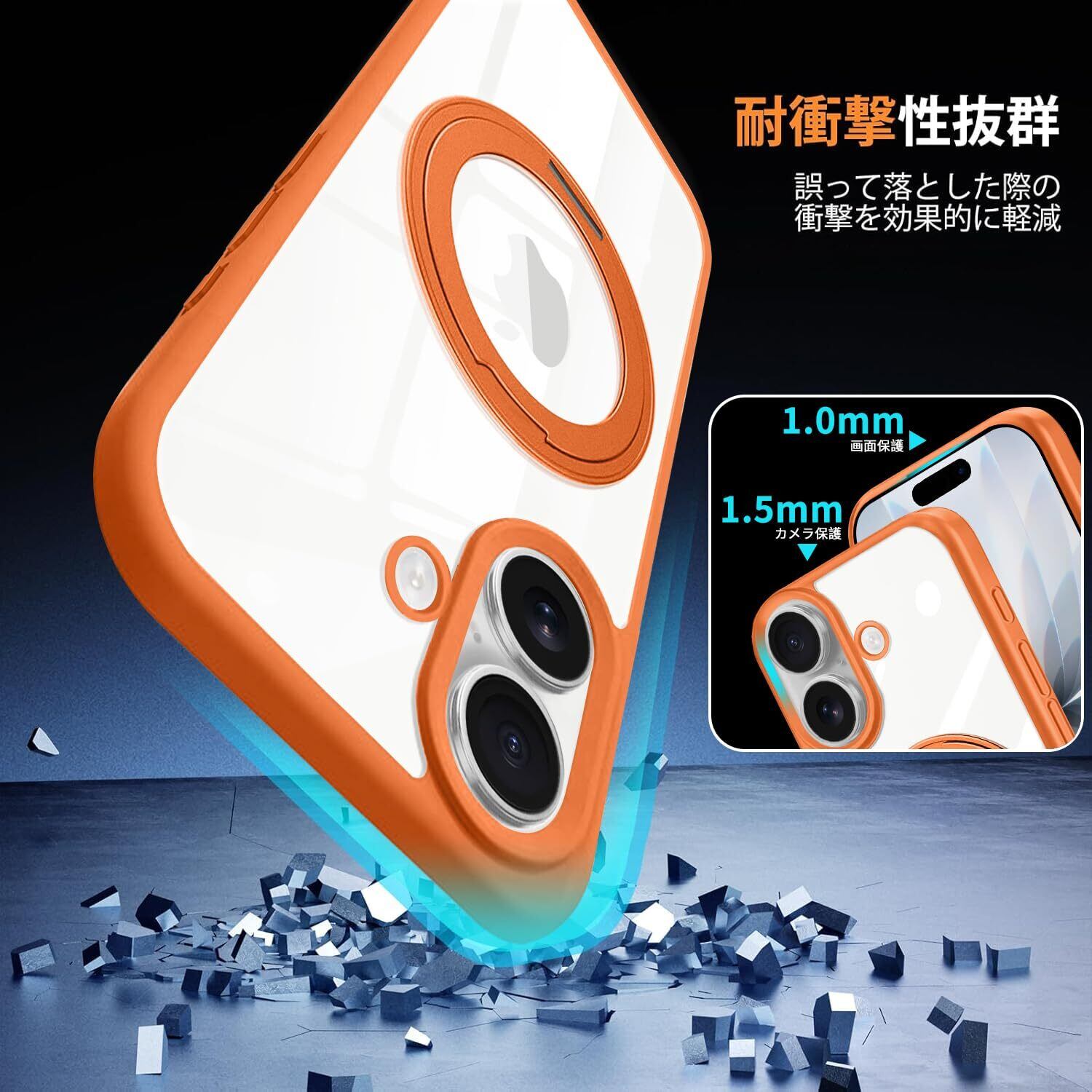 iPhone 17 用 ケース クリア ショルダー MagSafe対応 リング 360°回転スタンド ワイヤレス充電対応 いphone17 カバー 耐衝撃 透明 黄ばみなし アイフォン17 スマホケース 首掛け 肩掛け 斜め掛け 紐付き 斜めがけ 織りストラップ付き ネックストラップ ショルダー ケース 長さ調節可能 取り外し可能 落下防止 紛失防止 (オレンジ) | Lulu