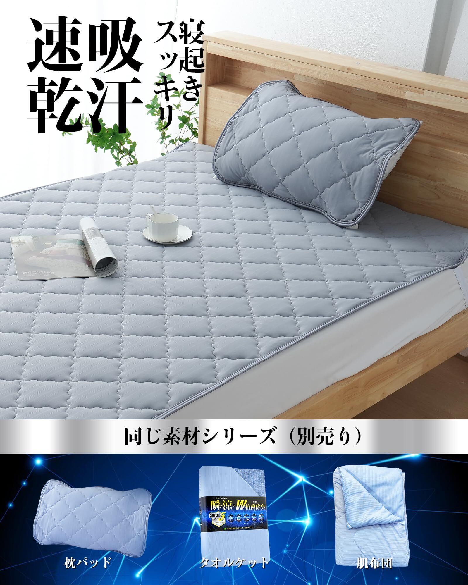 【優れた通気性と速乾性】3層構造による通気性が抜群で、寝汗をかいても素早く乾きます。洗っても劣化しにくく、いつでも清潔にご使用いただけるのが特徴です。丸洗いできるため、お手入れも簡単です!