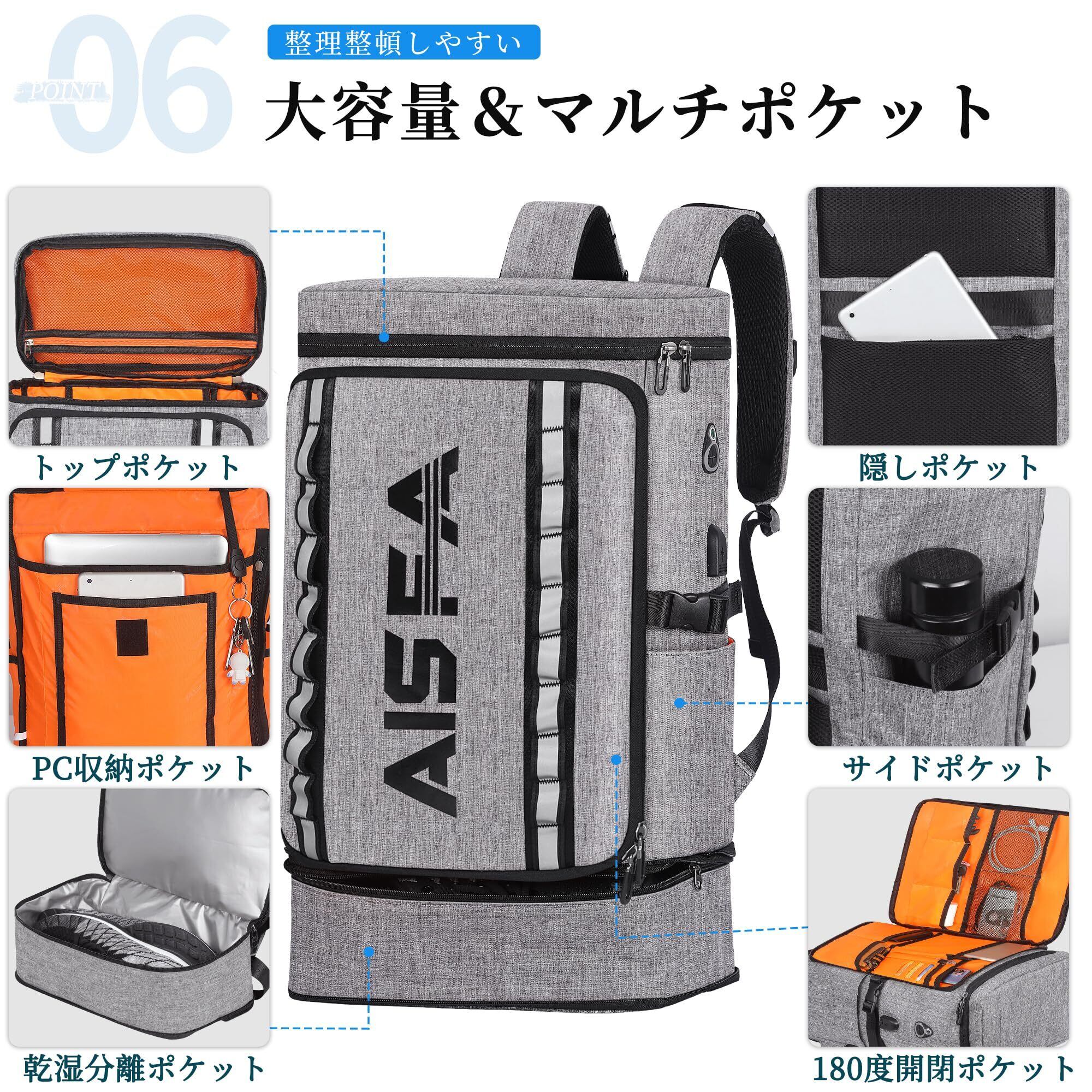 【大容量で使い勝手抜群】AISFAのリュックは、30Lの大容量を誇り、スポーツ、旅行、ビジネスなど様々なシーンで活躍します。2層式のデザインで、外出時の必需品をしっかり収納でき、靴や弁当も別 compartments に分けて整理可能です。