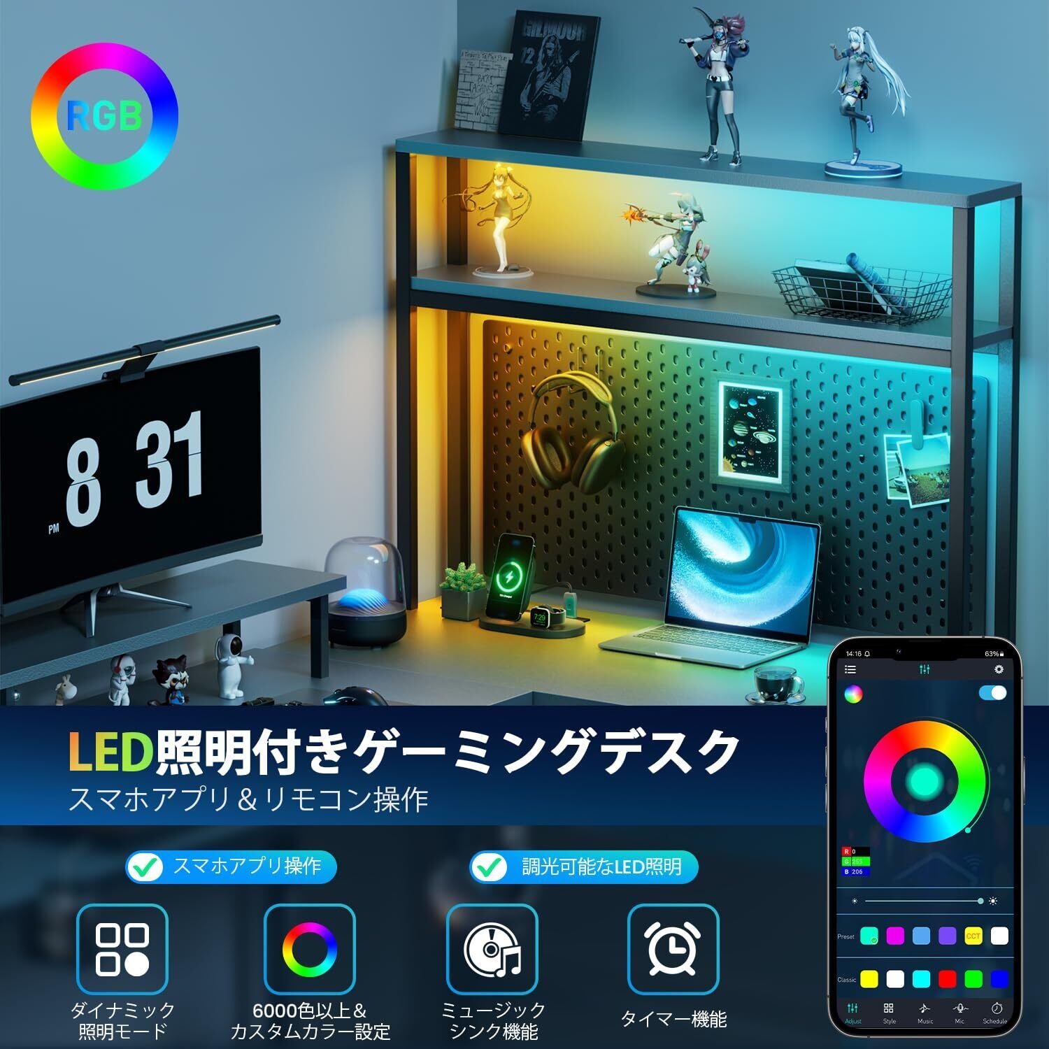 【LEDライト付きで快適空間】デスクにはLEDライトを搭載し、作業やゲームの際に明るさを調整できます。昼夜問わず、目に優しい光で快適な作業環境を演出します。自分のスタイルに合わせた照明を楽しむことができ、集中力を高める手助けをします。