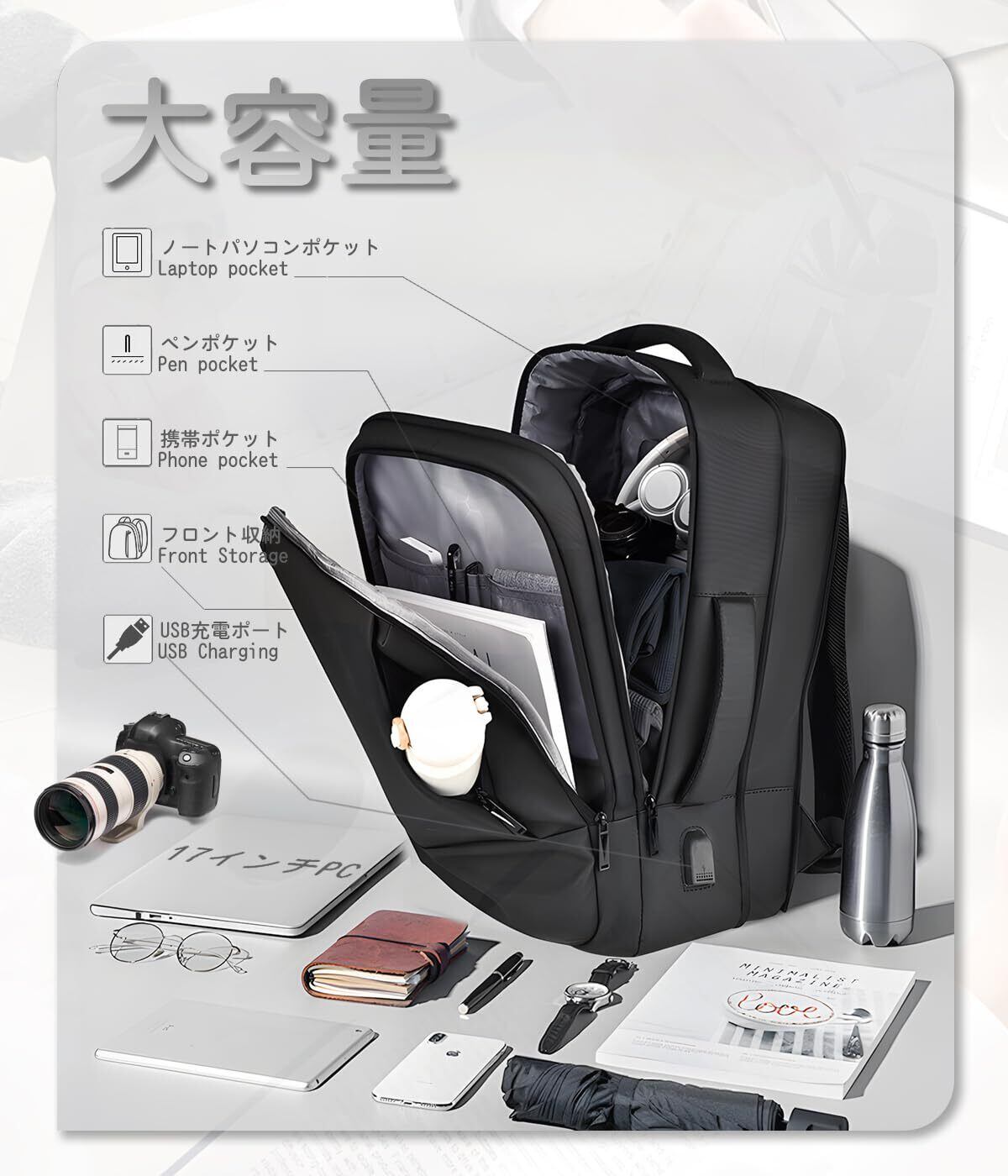 ・用途:ビジネス、出張、旅行、アウトドア、通学用