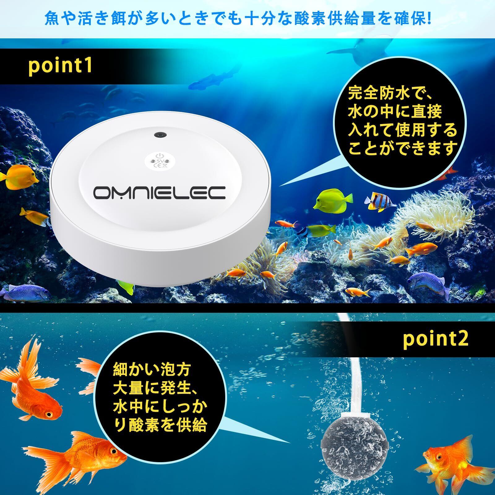 OMNIELEC エアーポンプ 釣り エアレーション エアーポンプ 水槽 浮かせる 水槽の停電対策 海釣り 貝の砂抜き 水耕栽培 鮎釣り 観賞魚