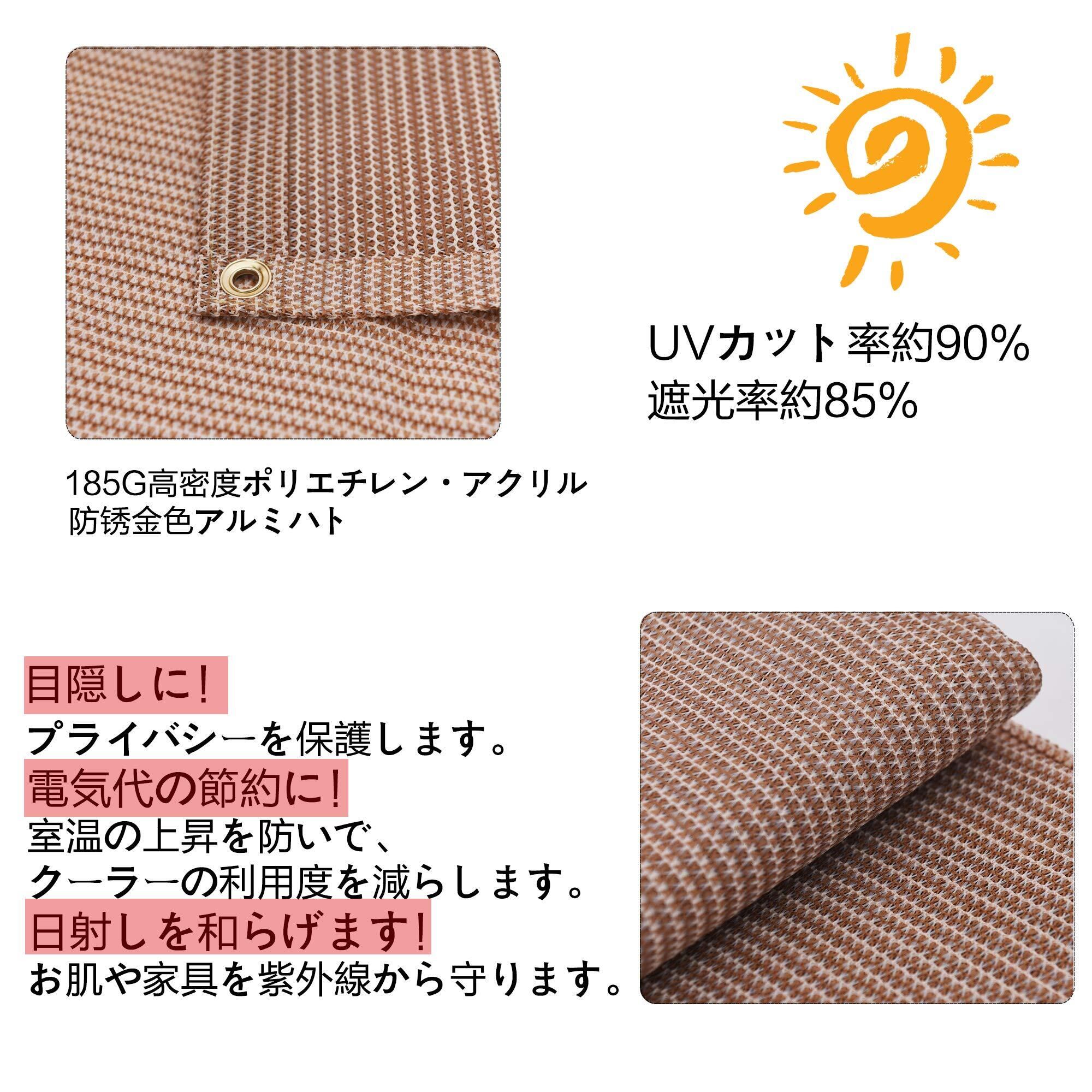 取り付け:錆びないのゴールデンアルミハトメが付いているので、付属品6x1.5m取付けひも、ベランダや窓ペ、廊下、庭下、庭先、玄関などに簡単に取り付けることができます。お洒落なデザインなので、日よけだけでなく、ご自宅やお庭のエクステリアとしてもご利用なれます。
