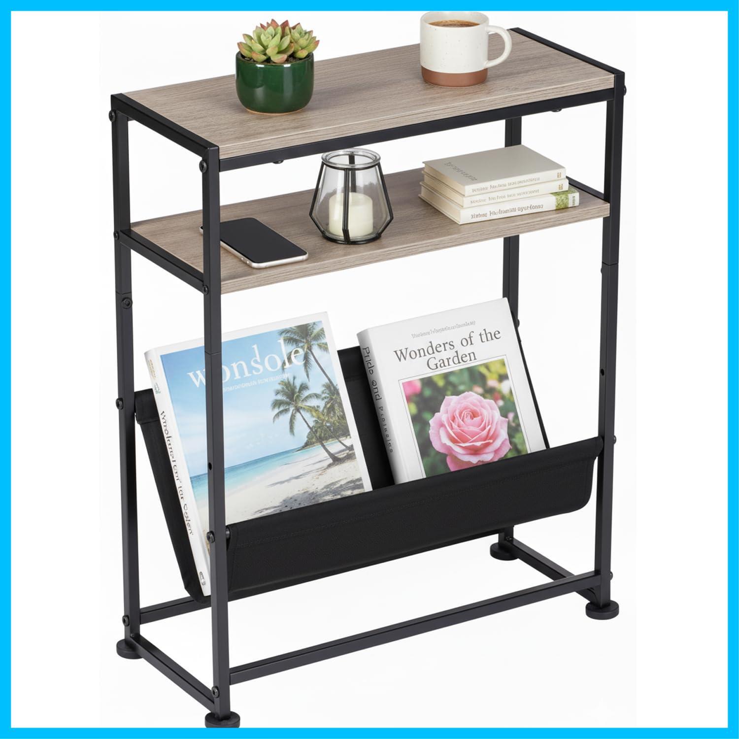 ZEXVIDA スリムサイドテーブル・雑誌架付き 幅43.2×奥行18×高さ55cm 収納棚 ラック 小さめ スリム ミニテーブル ベッドサイドテーブル ナイトテーブル ベッド横 コーヒーテーブル リビングサイドテーブル 雑誌テーブル コンパクトテーブル 木目調 (オーク) | Lulu