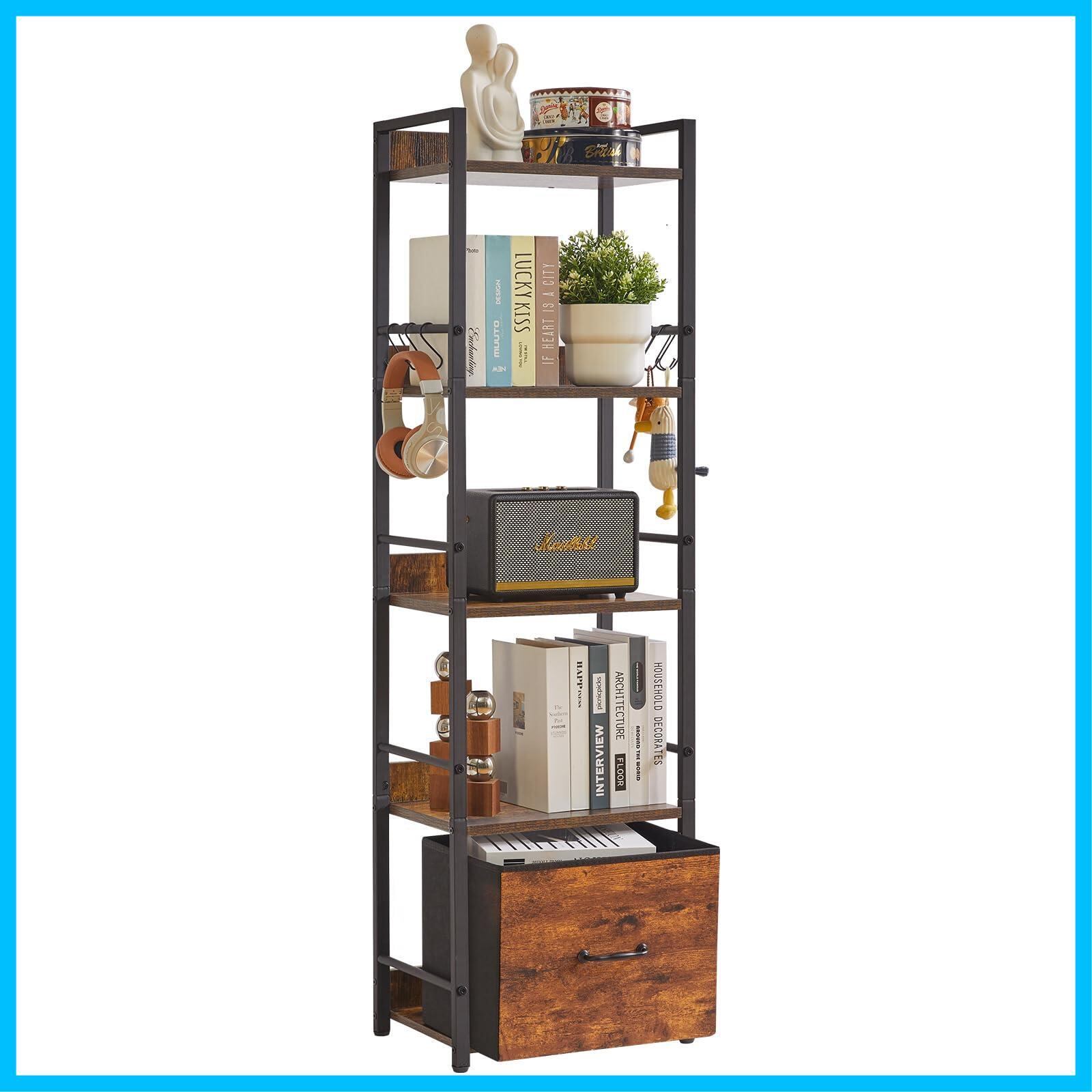 Aibiju 本棚 スリム リビング 棚 おしゃれ 幅39奥行26高さ136cm オープンシェルフ ラック 5段 収納ラック 収納棚 耐荷重75kg レトロ色の工業風 ヴィンテージ YD-BC001H | Lulu