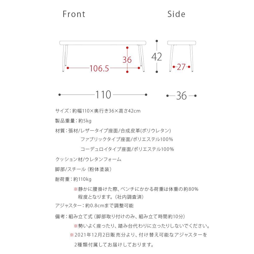 【耐荷重】約110kg ※静かに腰掛けた際、ベンチにかかる荷重は体重の約80%程度となります。(社内調査済) 【アジャスター】 約0.8cmまで調整可能