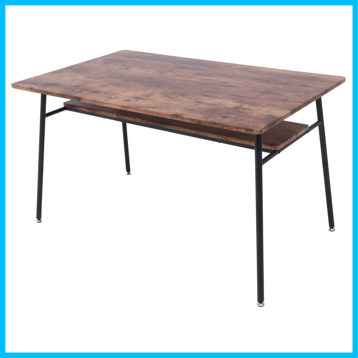 不二貿易 ダイニングテーブル テーブル 2人用 4人用 ヴィンテージ風 木目調 収納棚付き アジャスター付き 角が丸い 幅123.5×奥行75×高さ70cm ブラウン 単品 ナビア 14658 | Lulu