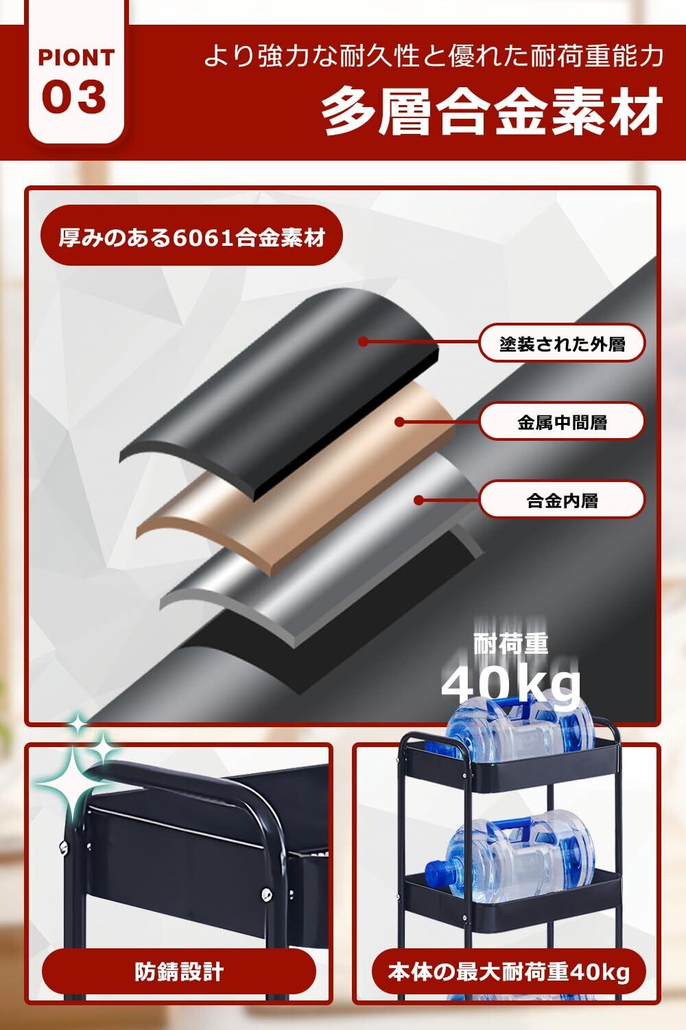 【耐荷重に優れた4段構造!】各段には十分な耐荷重が備わっており、重たいアイテムでも安心して収納可能です。調味料、ペットボトル、日用品など、使い方はあなた次第!多彩な収納力を引き出します。