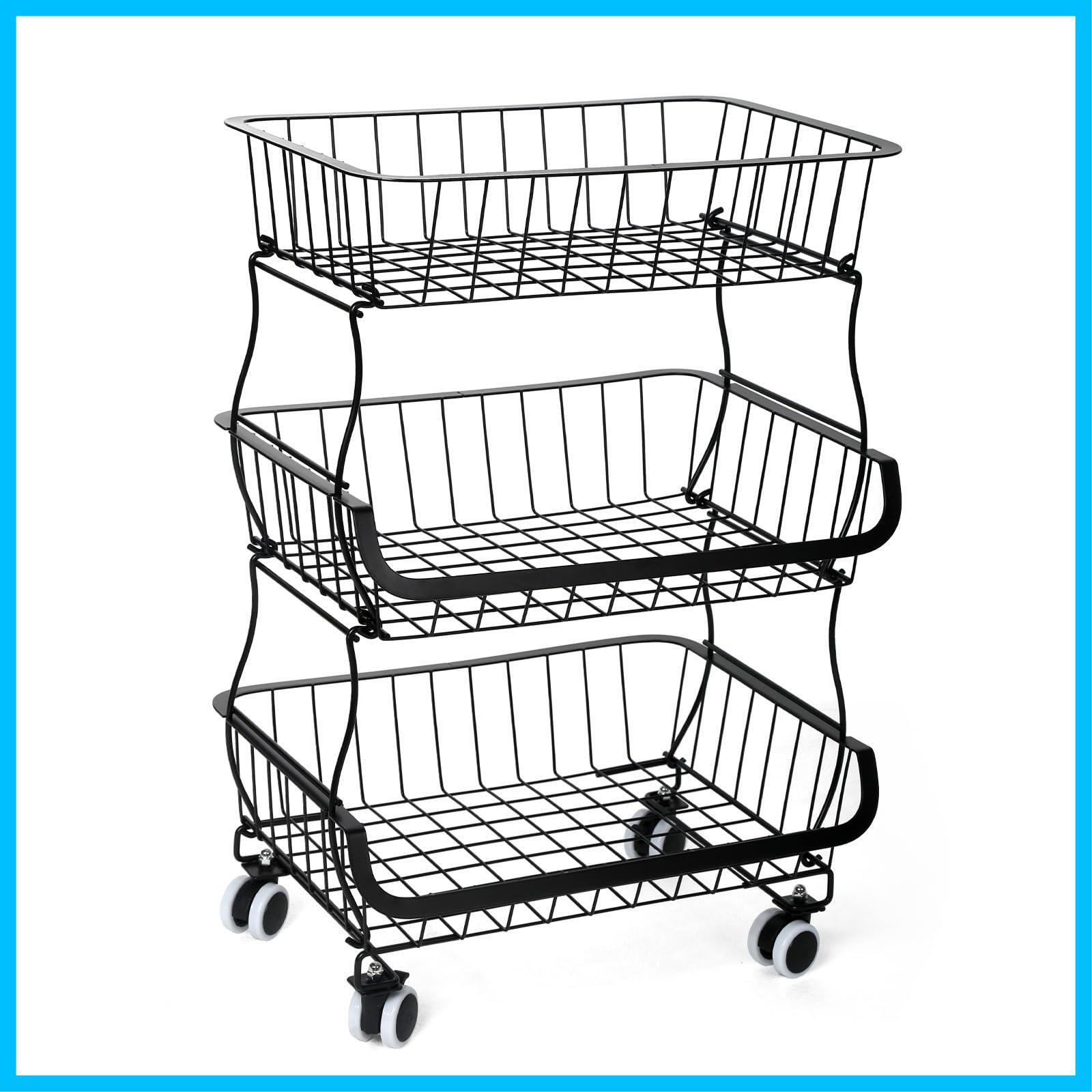 ONEDONE キッチンワゴン キャスター付き ワゴン キャスター付き キッチン収納 カート ラック バスケット 大容量 各段耐荷重10キロ 多機能ランドリー収納 調味料/皿/野菜/服/雑貨収納収納 洗濯室 バルコニー 組立簡単 メタル製 黒 (3段) | Lulu