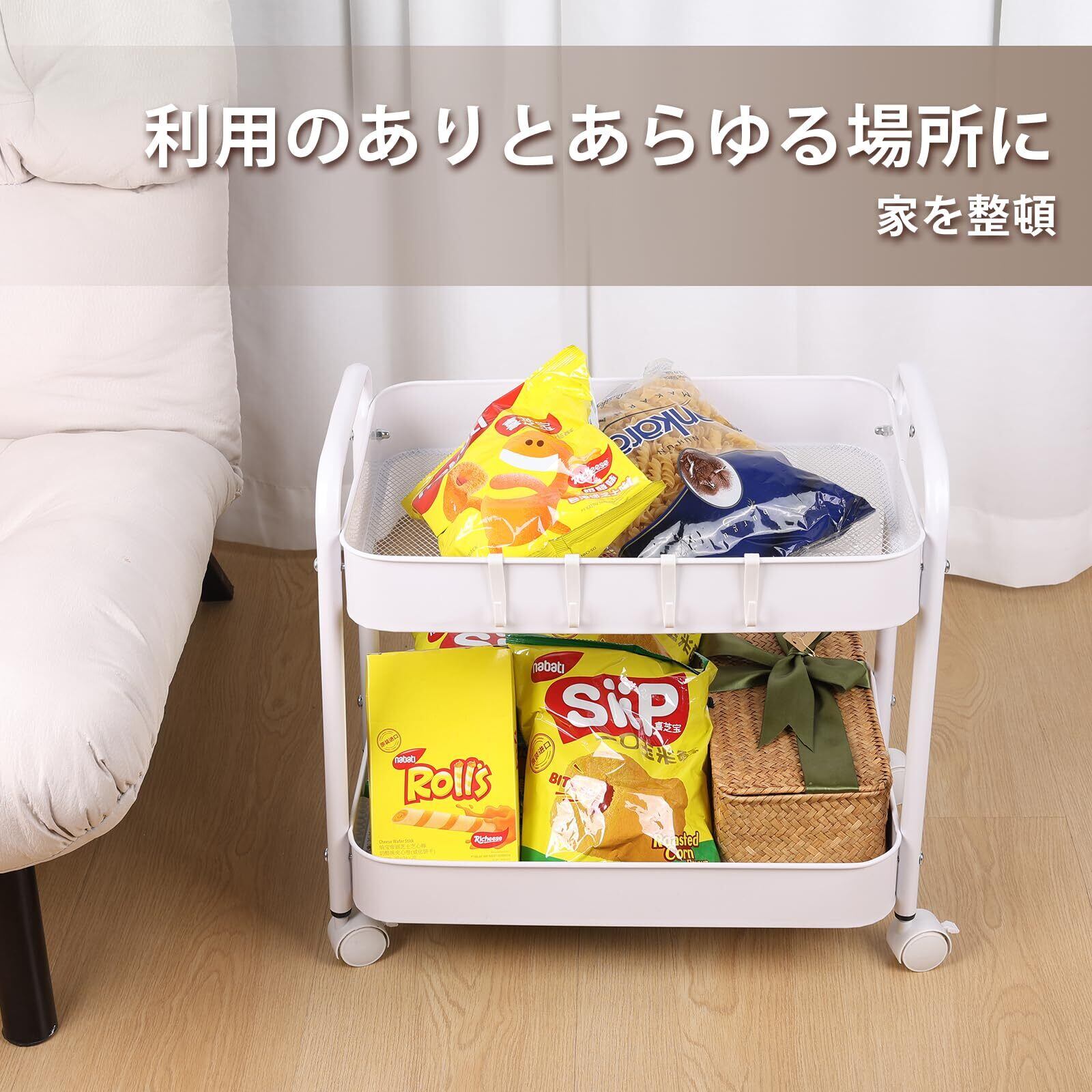 Ufriandz スチールラック小物収納ワゴン2段 デスク下収納 ストッパー付きキャスター キッチンラック全鋼 移動に便利 寝室、オフィス、ランドリー、狭いスペース,白