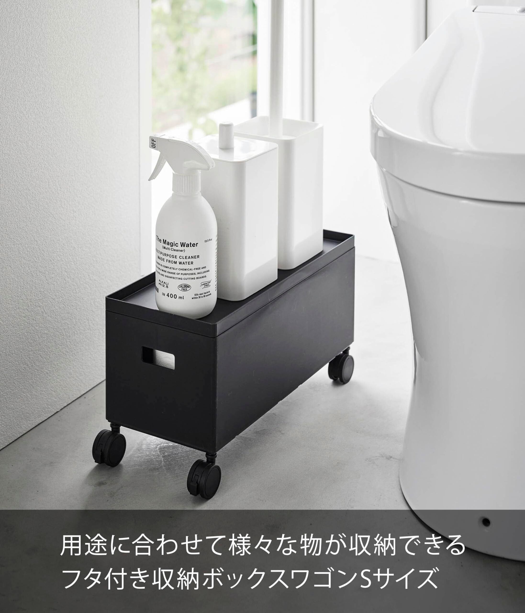 山崎実業(Yamazaki) 蓋付き 収納ボックス ワゴン S ブラック 本体:W15.5×D35×H19cm(キャスター含む) タワー tower キャスター付き 収納ワゴン 隙間収納 4555 | Lulu