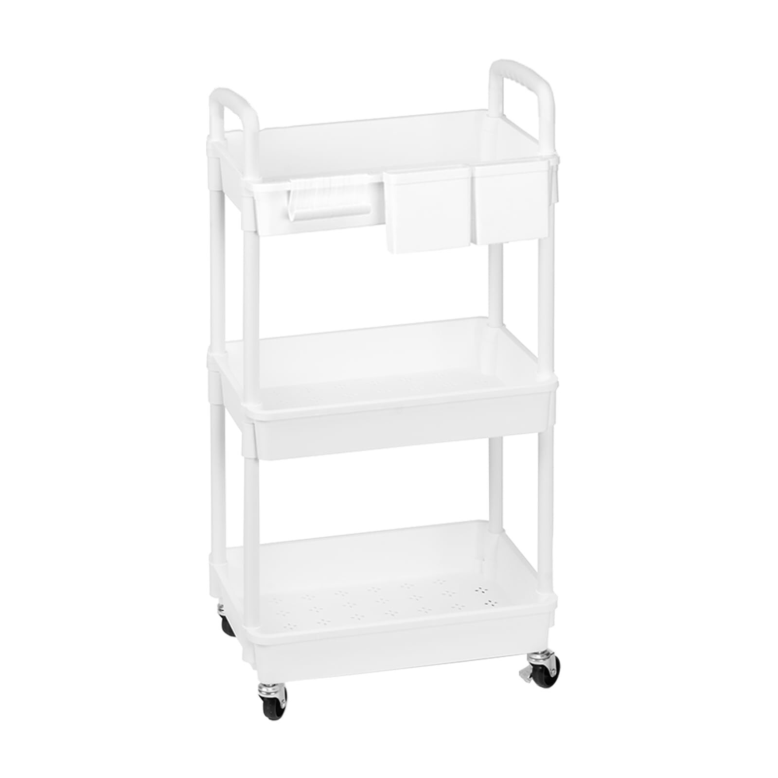 SIUSA キッチンワゴン ワゴン キャスター付き 3段 スリム 収納ワゴン 大容量 収納カート ハンドル/収納カップ付き ペットボトル収納 洗面所 台所 トイレ 浴室 冷蔵庫横 組立簡単 幅38×奥行27×高さ74cm ホワイト | Lulu