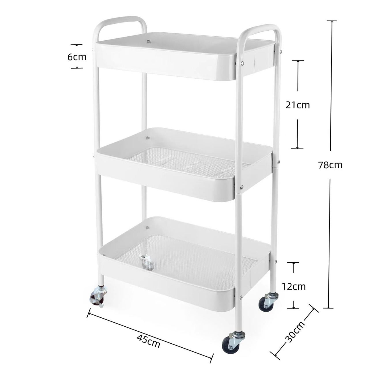 【スペースを有効活用する3段ワゴン!】Ufriandzキッチンワゴンは、幅45cm、奥行30cm、高さ78cmのコンパクトなサイズで、狭いスペースでもしっかり活躍します!キッチン、オフィス、寝室やランドリーなど、様々なシーンで使える実用的な収納アイテムです。