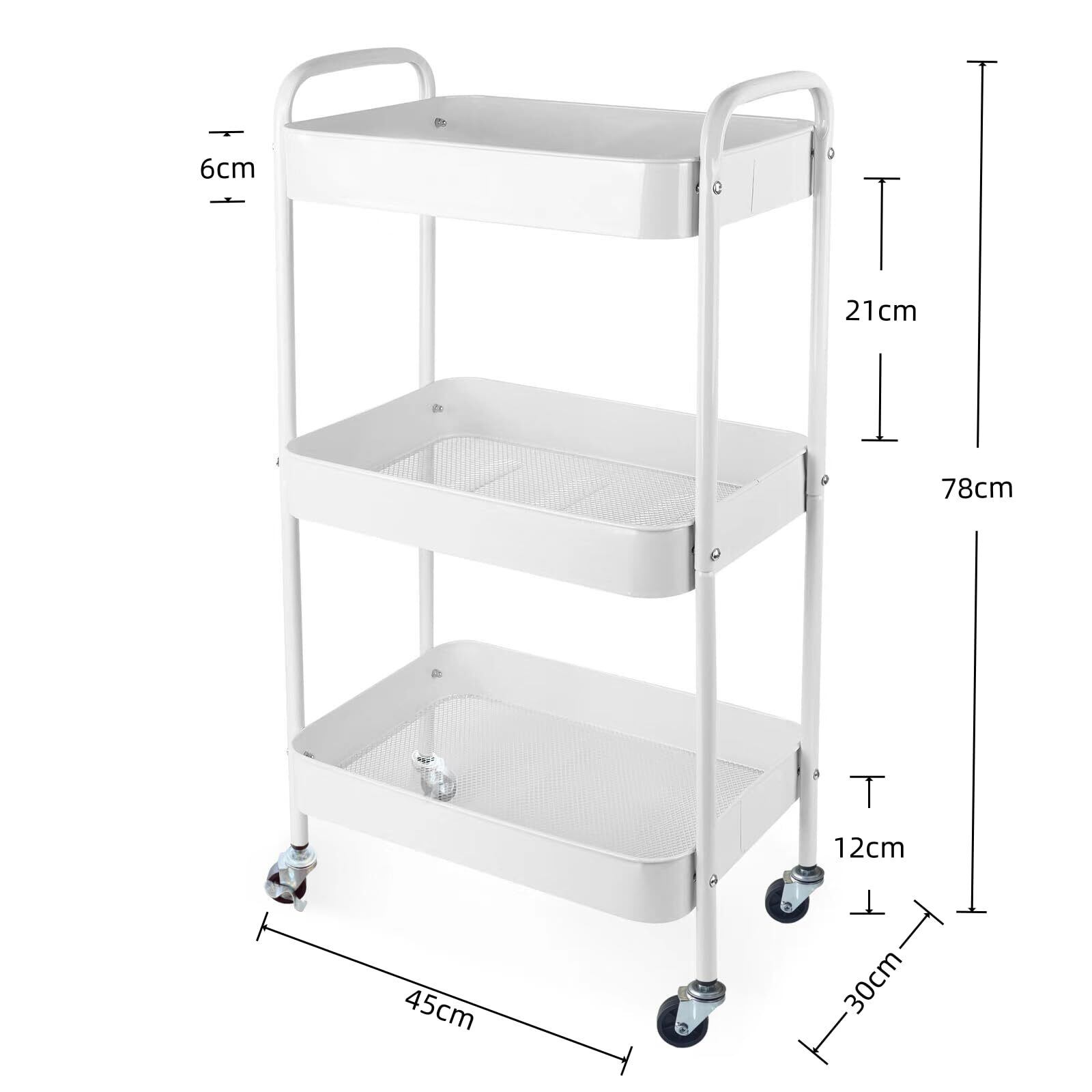 Ufriandz キッチンワゴン 収納ワゴン キャスター付き3段建て 移動実用カートは キッチン オフィス 寝室 ランドリー 狭いスペース 簡単組み立て 白 45×奥行30×高さ78cm | Lulu