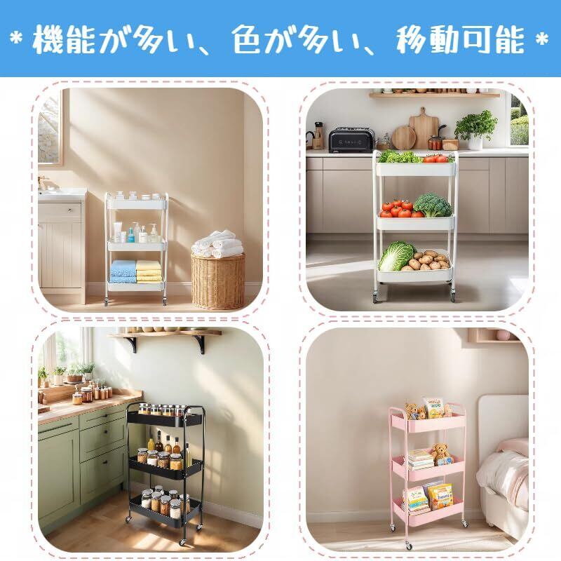 【様々な場所に対応 】ワゴン キャスター付き 三段 ワゴン、収納ワゴン、キャスター付きラック ベッドルーム、日用品の収納には最適だと思います, 居間、子供部屋、キッチン等々に適します