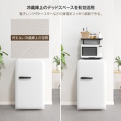 【デッドスペースを活用】キッチンラックは小型冷蔵庫上のデッドスペースを活用でき、冷蔵庫上の無駄な空間を便利な収納スペースに変わり、家電/器具や小物を収納まとめて収納できます。冷蔵庫上だけではなく、デスク上、キッチン等のでも幅広く利用でき、お部屋の収納スペースを広げられます。