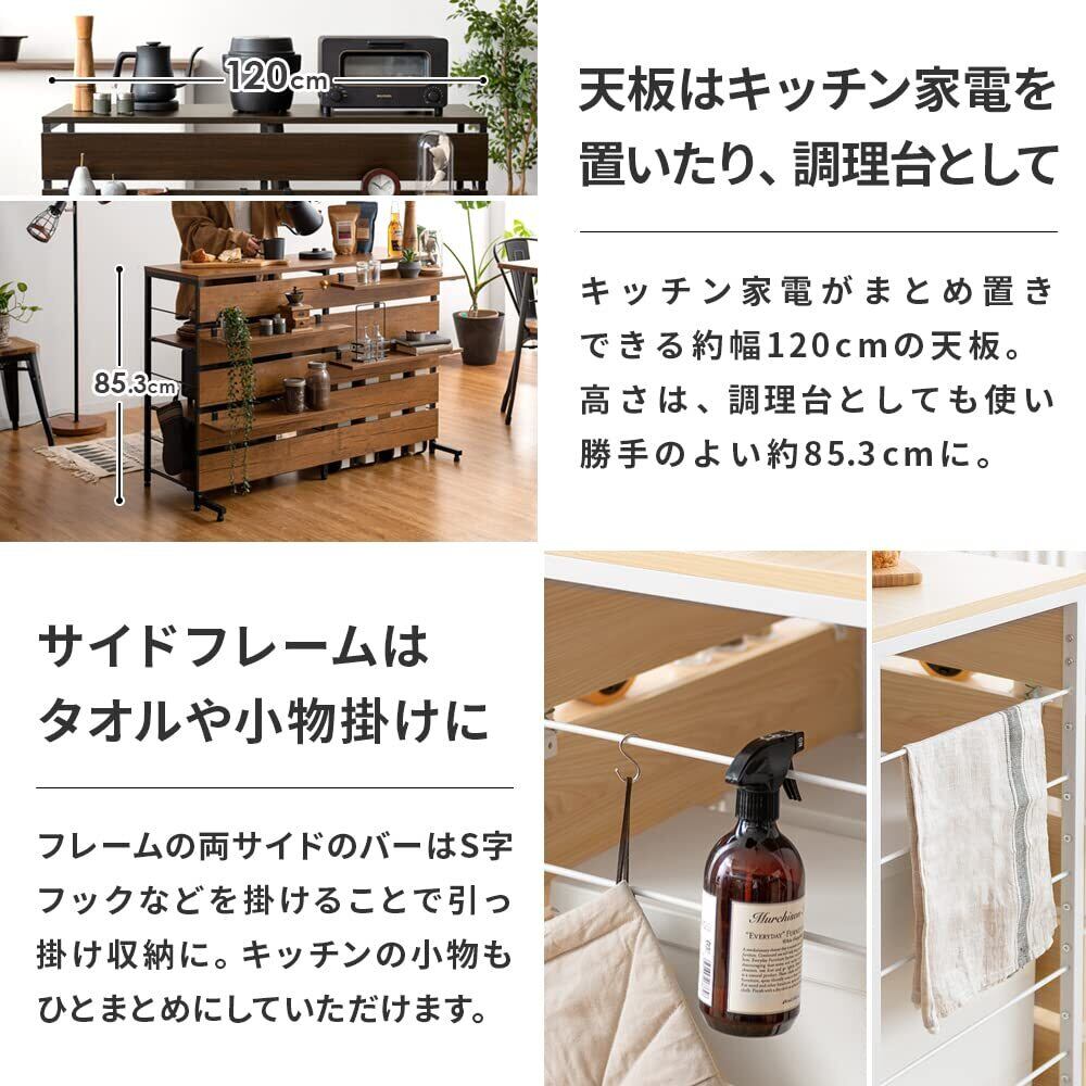 エア・リゾーム レンジ台 レンジラック キッチンラック ゴミ箱上ラック ゴミ箱収納キッチンカウンター emery(エメリー) 120cm幅 (ライトブラウン×ブラック, 背面収納あり)