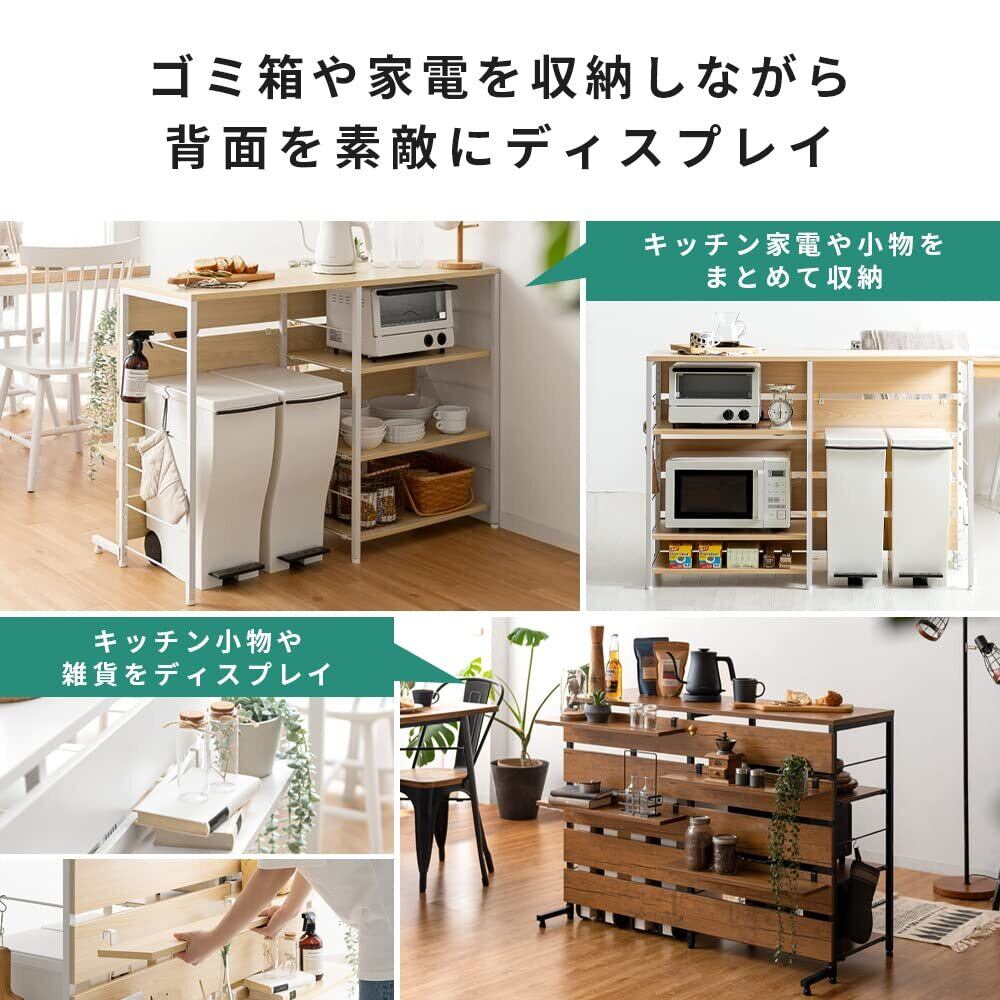 【多機能収納で便利なライフスタイル!】電子レンジやトースター等の家電はもちろん、調理器具や食器類の収納にも最適です。背面収納をご活用いただければ、スペースを有効に利用でき、使い勝手の良いキッチン環境を実現します。また、ゴミ箱上ラックとしても機能し、隠すことなく整理整頓された印象を与えます。