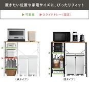 【機能的な収納で使いやすさ抜群!】ゴミ箱上ラックとしても使用できる優れた収納設計。スライドトレーが付属しているため、調味料や小物を出し入れしやすく、使い勝手の良さを高めています。また、キッチン作業を効率的に進めるための十分なスペースを確保していますので、快適な料理環境をサポートします。