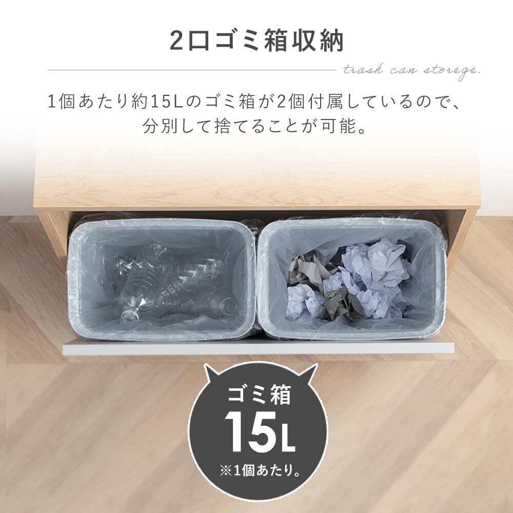 2口ゴミ箱収納1個あたり約15Lのゴミ箱×2個収納。(ゴミ箱付属)
