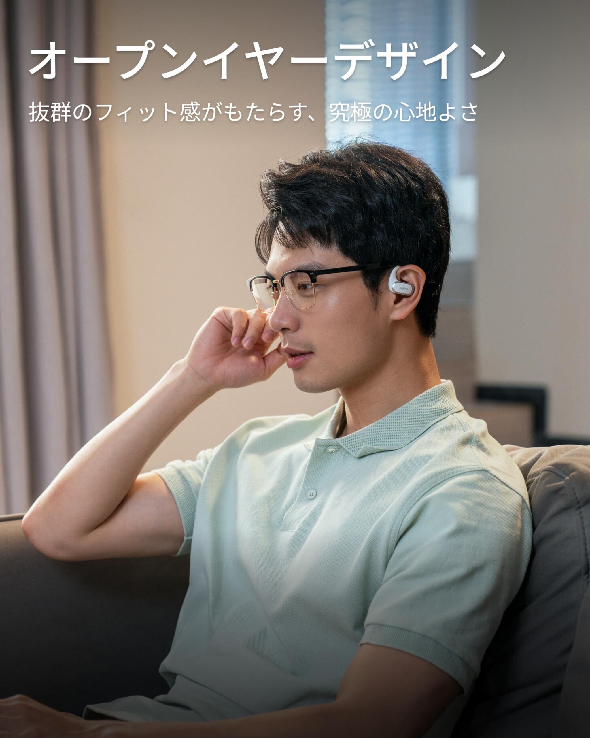 オープンイヤーならではの快適さ:耳をふさがず、聞き疲れや蒸れを感じず、夢のようなオープンイヤー型イヤホンがさらに進化。耳にぴったりと寄り添うイヤーフックはわずか8.7gの軽さで、さらに快適な付け心地。通勤通学も、仕事中も、一息つきたい時も、周りの世界と繋がりながら高音質の音楽を楽しめます。