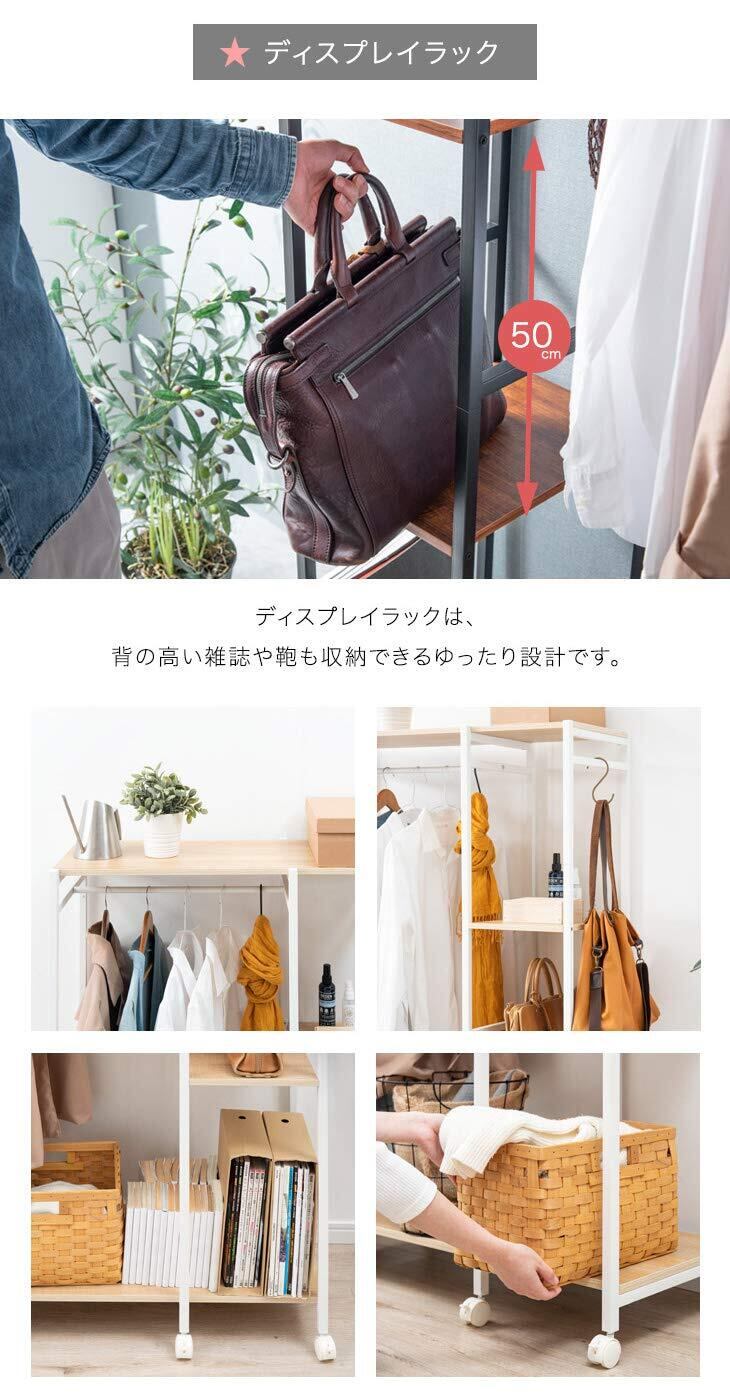 【収納スペースを最大限活用!】上下2段にわたる棚とハンガーカバー付きの仕様は、コートやドレス、アクセサリーなど、さまざまな衣類を整理整頓して収納するのに最適です。また、オープンラックのため、コーディネートを楽しむのにも役立ちます。