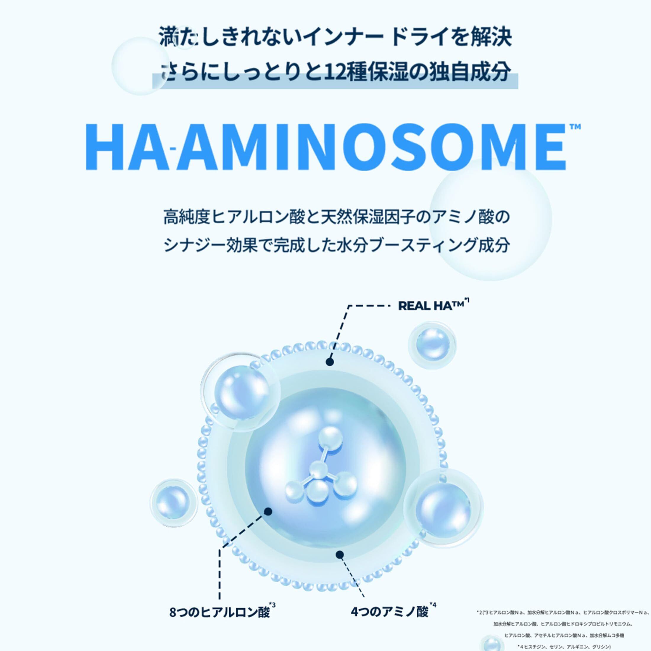 HA-AMINOSOME 高純度のヒアルロン酸と天然保湿因子のアミノ酸をリポソーム化し完成した 水分ブースティング成分配合