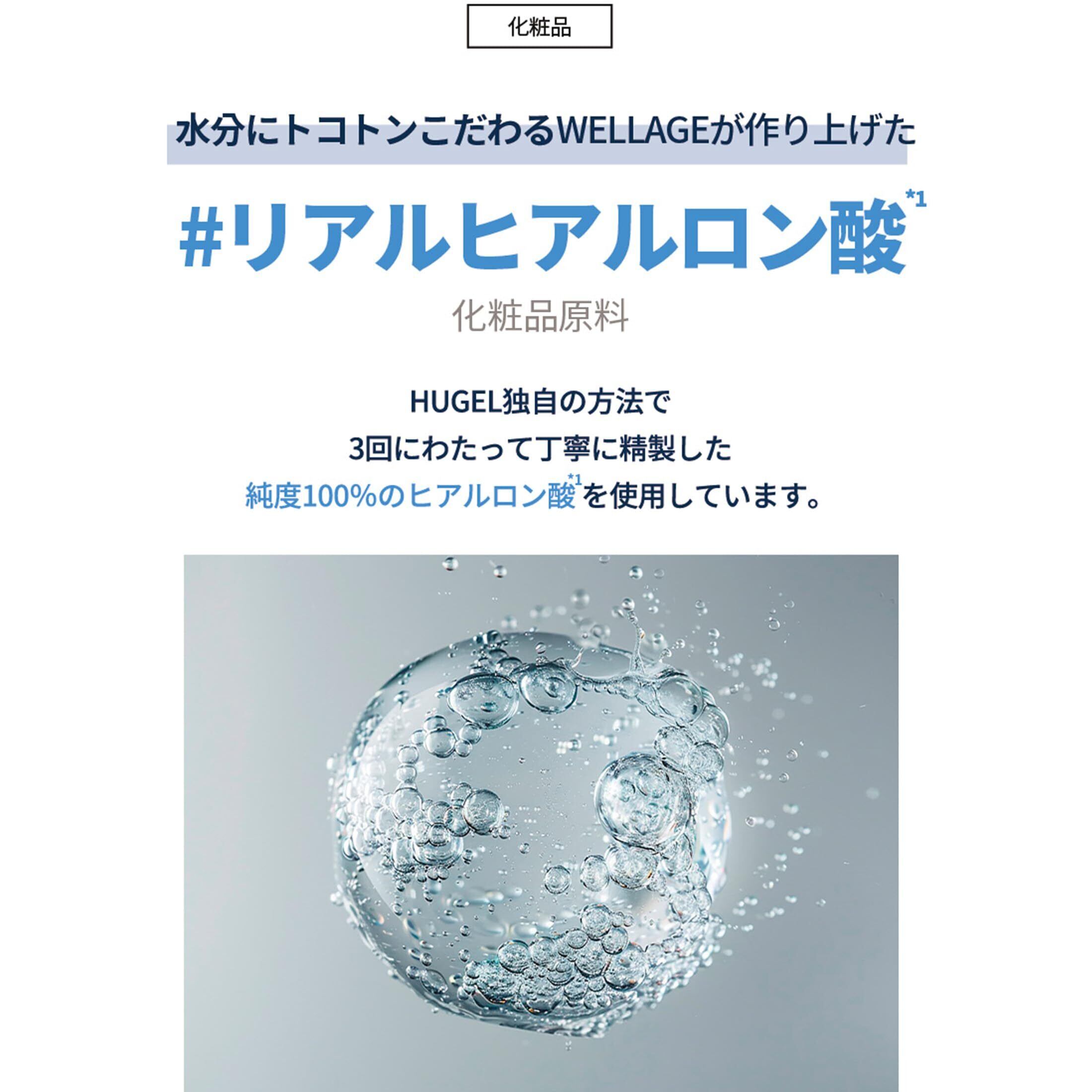 HUGEL独自の製法で3回にわたって丁寧に精製した純度100%ヒアルロン酸(*3)を使用しています