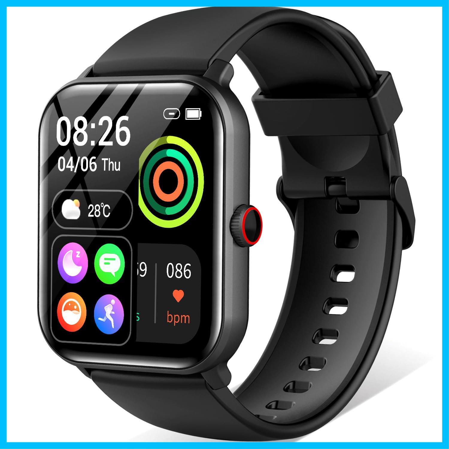 スマートウォッチ【2025年新開発・プロ推奨モデル】スマート ウォッチ iPhone対応 アンドロイド対応 Bluetooth5.3 通話機能付き 1.9インチ大画面 活動量計 腕時計 100種類運動モード 着信/メッセージ通知 文字盤切替 音楽再生 スポーツウォッチ 天気予報 防水 長持ちバッテリー 薄型 軽量 ギフト(黒い)