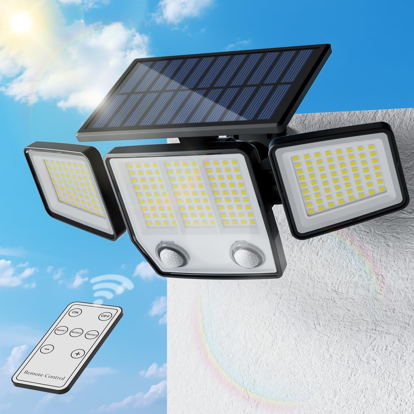 ソーラーライト 屋外 防水 【2025初売り 2600mAh大容量 3面発光&超高輝度236LED 光束最大2500ルーメン】 センサー ソーラー 人感 3つ知能モード 超高輝度 360°角度調整可能 防犯 自動点灯/消灯 ガーデン/壁掛け/庭先/表玄関/駐車場/停電時適用 地震 津波 台風 防災対応 IP65 取り付け簡単 リモコン付き (1個本体+1個リモコン)