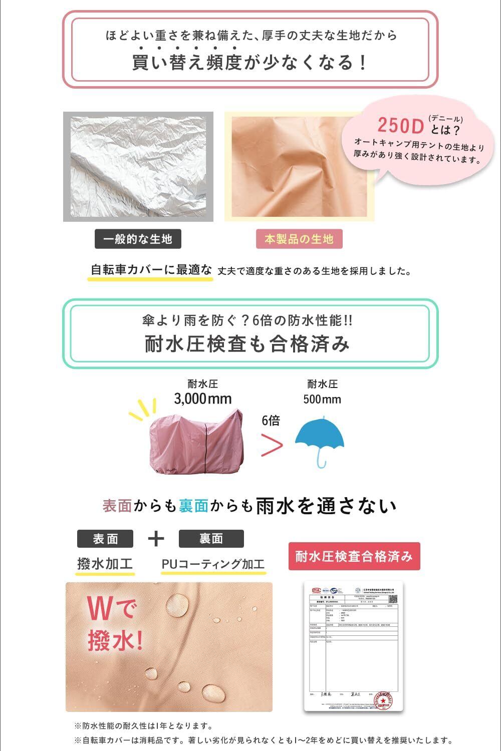 【強力な防水性能!】250Dの厚手素材を採用し、しっかりとした頑丈さを確保。雨や風から自転車をしっかり守り、長時間の使用にも耐える高耐久性が魅力です!