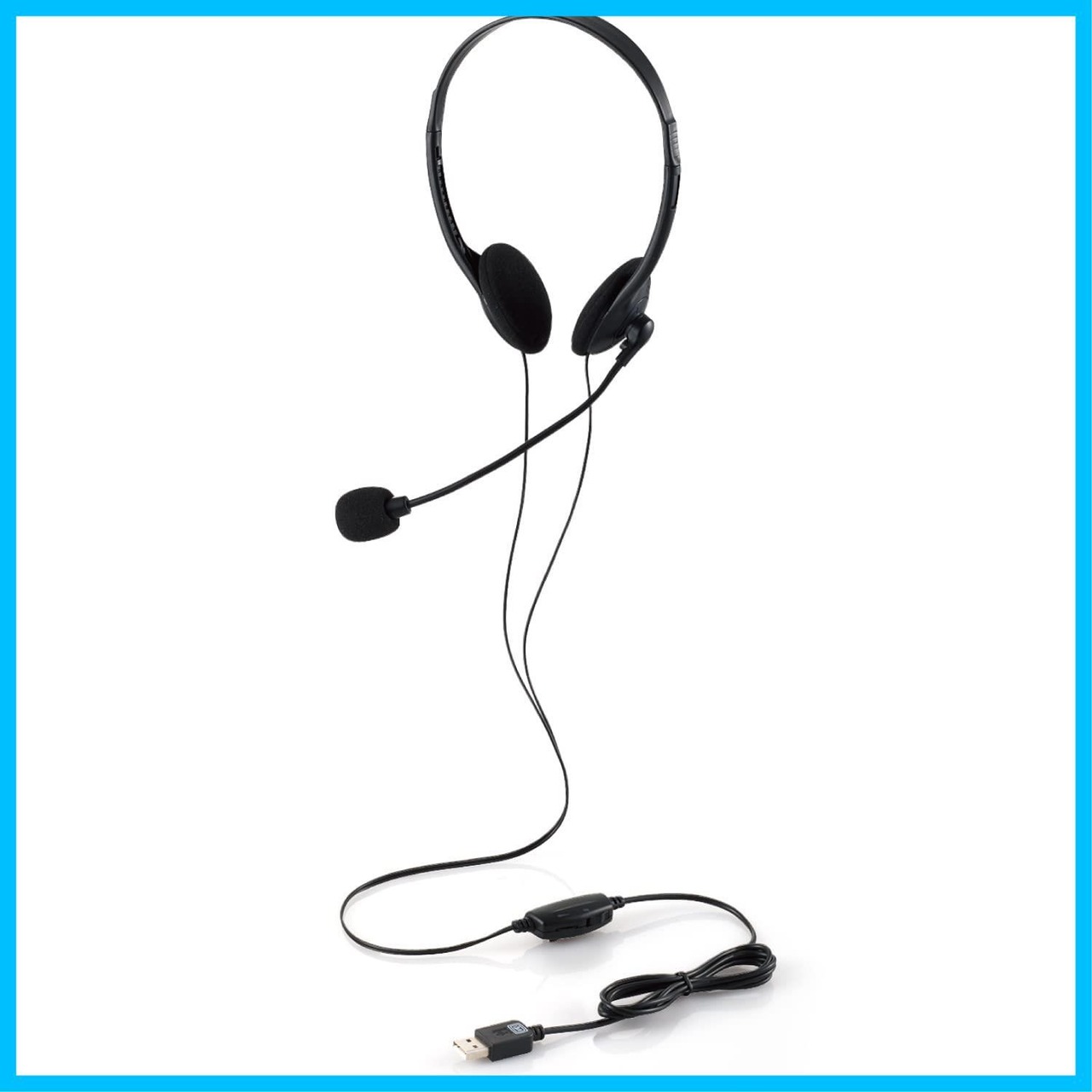 エレコム ヘッドセット オーバーヘッド マイク付き USB ミュート機能 ボリューム調整 フレキシブルアーム 軽量 小型 両耳 1.8m ブラック HS-HP01SUBK