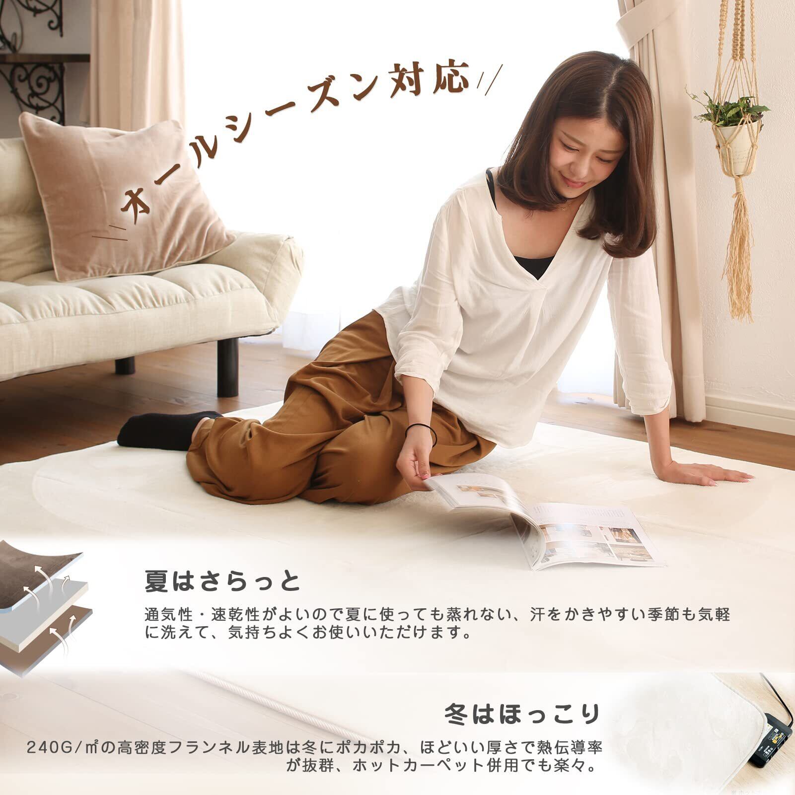 【オールシーズン対応】こちらのラグは、暖かい季節にも寒い季節にも最適で、オールシーズンご利用いただけます。さらに、床暖房やホットカーペットにも対応しているので、冬の寒い日でも快適です。