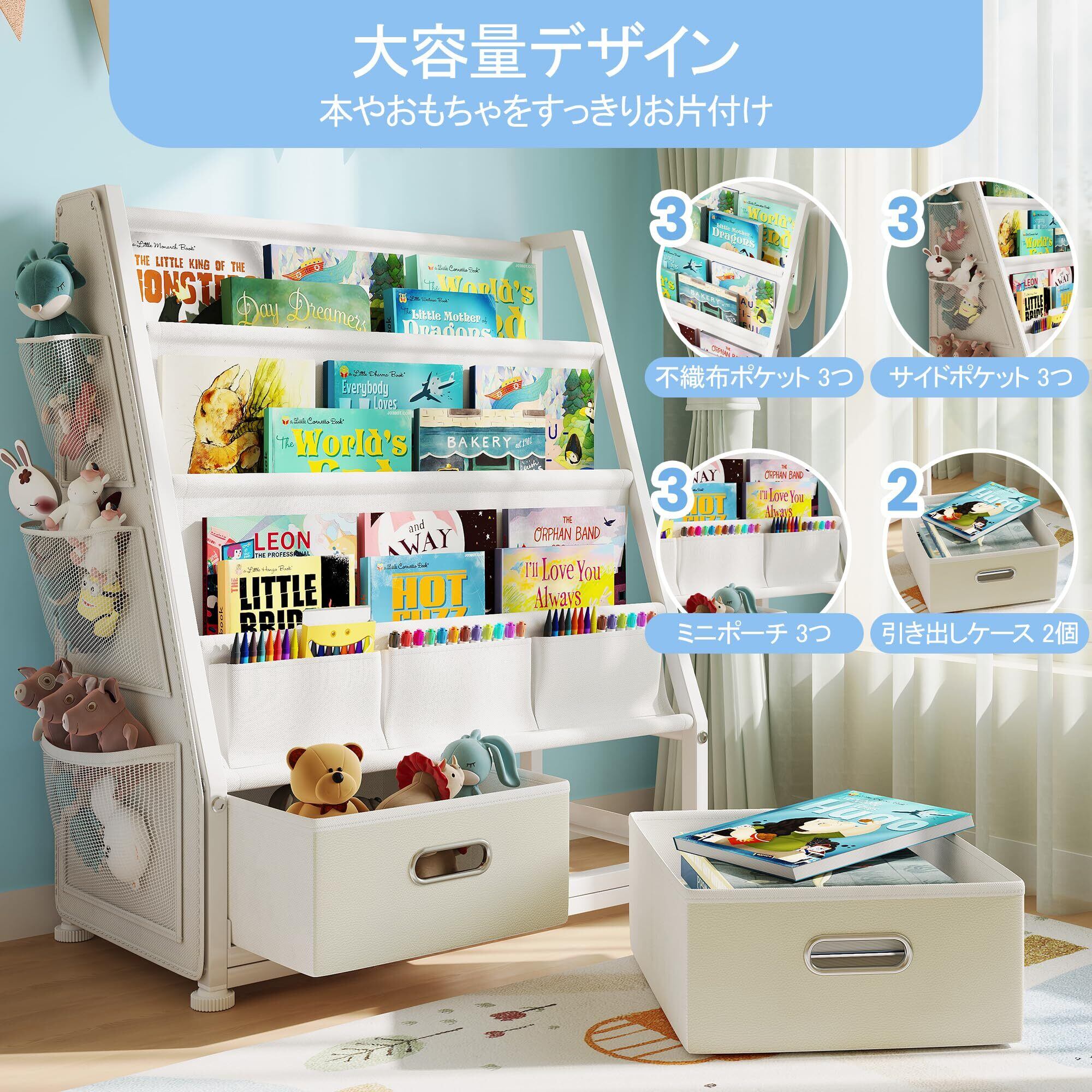 GoTiling 大容量 子供 収納 本棚: 勉強部屋 しっかり 絵本ラック - 保育園 可愛い おもちゃ収納ボックス - スッキリ 収納棚 子供部屋