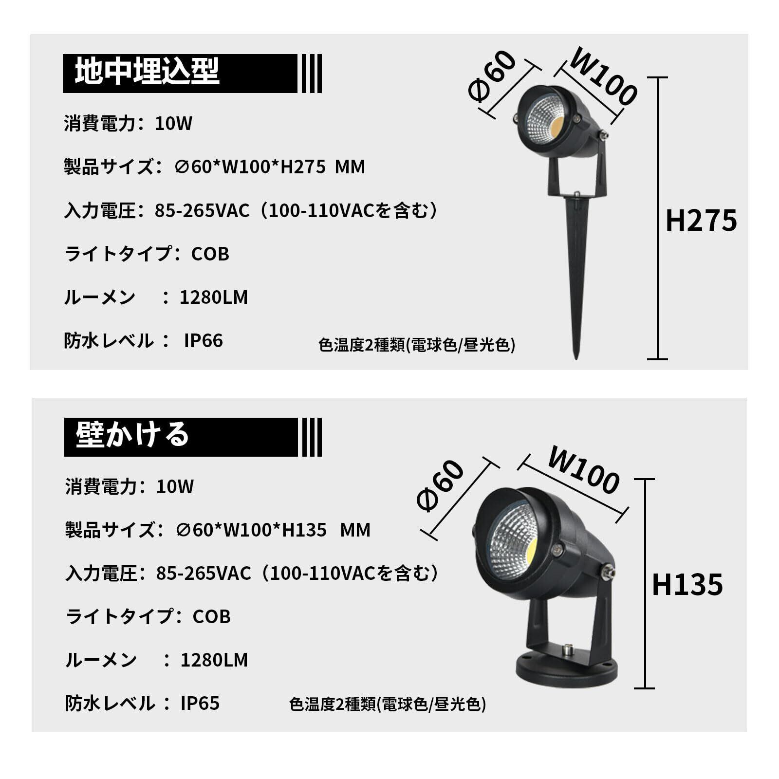 【2025年改良】LED ガーデンライト 昼光色 6000K 10W 屋外用ライト 1280ルーメン ガーデンスポットライト IP66防水庭園灯 上下左右に回転可能 芝生 風景 ライト、地中埋込型&壁掛け式 二通り取り付け方法 5万時間の寿命、PSE認証済み、コード長3m プラグ付き ガーデンライト 昼光色 2個