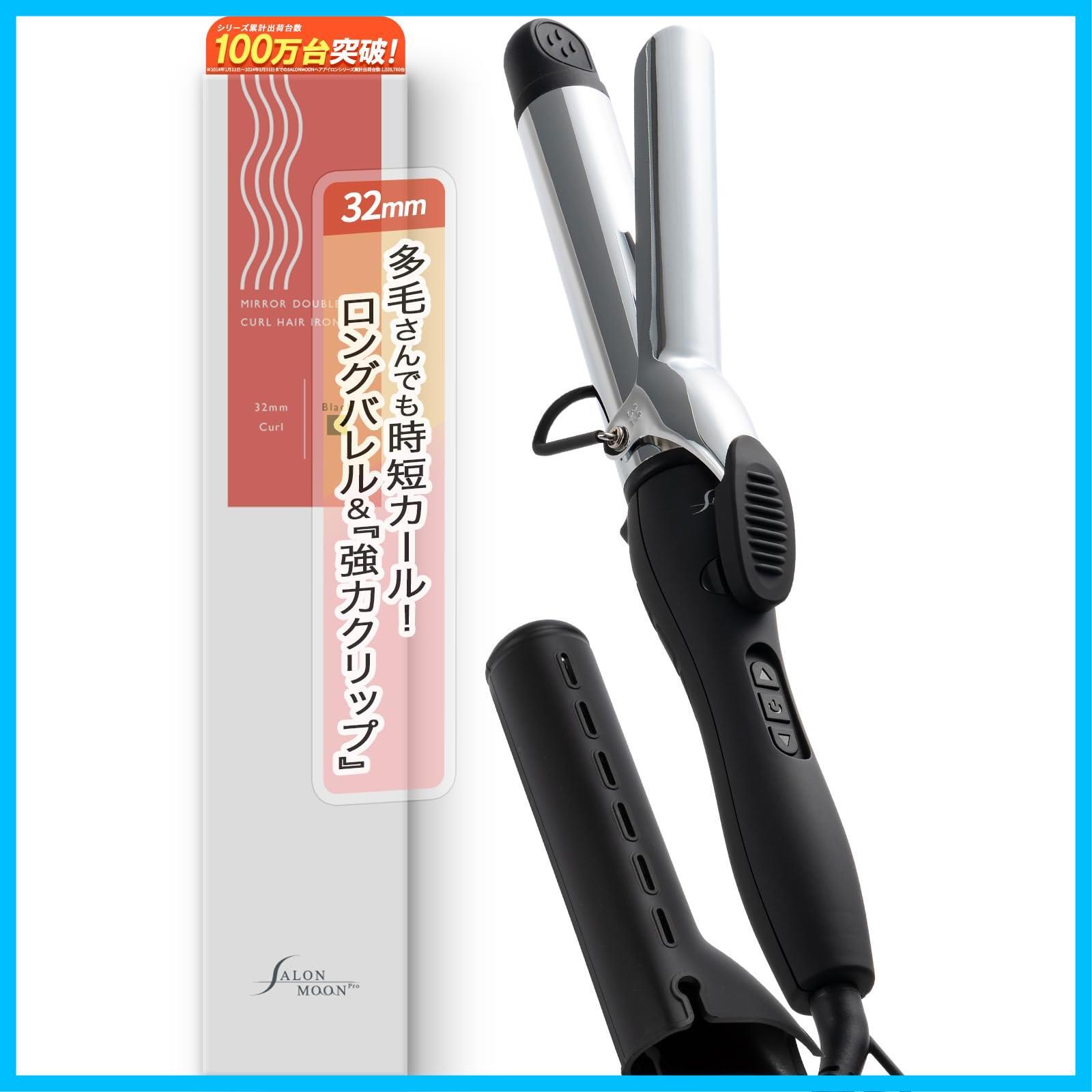 32mm ロングバレル 強力クリップ SALONMOON サロンムーン カール ヘアアイロン コテ 32ミリ ダブル マイナスイオン 海外対応 80℃~220℃ (29段階) シリコンケース付