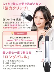 【ロングバレル採用】ロング ヘア でも一発 で カール が決まるよう従来品よりも4cm長い15cmの ロングバレル を採用した カールヘアアイロン です。 ロング から ミディアム ヘアの方はバレルが 太め の コテ 32mm が 人気 、ミディアム 、ボブ 、 ショート ヘア 、 メンズ の方は 細め の コテ 25mm ( 26mm ) が 人気 です。※ コテ 38mm をお探しの方は サロンムーン 32mm カールヘアアイロン でご対応いただけます。