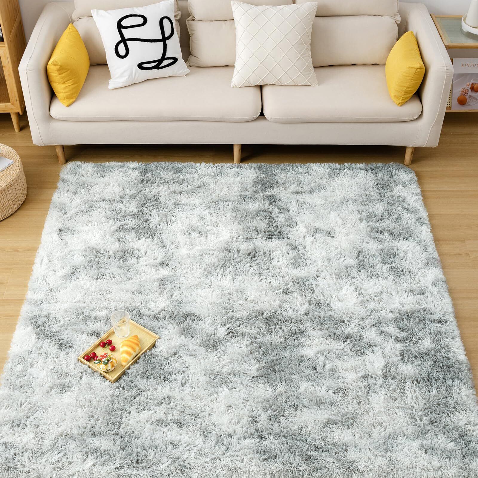 Sun Deco ラグ カーペット シャギーラグ 長方形 約1畳(120×160cm) 洗えるラグ ラグマット 滑り止め 防音絨毯 ふわっと手触り オールシーズン リビング用 じゅうたん 柔らかい (グレー, 120×160cm) | Lulu