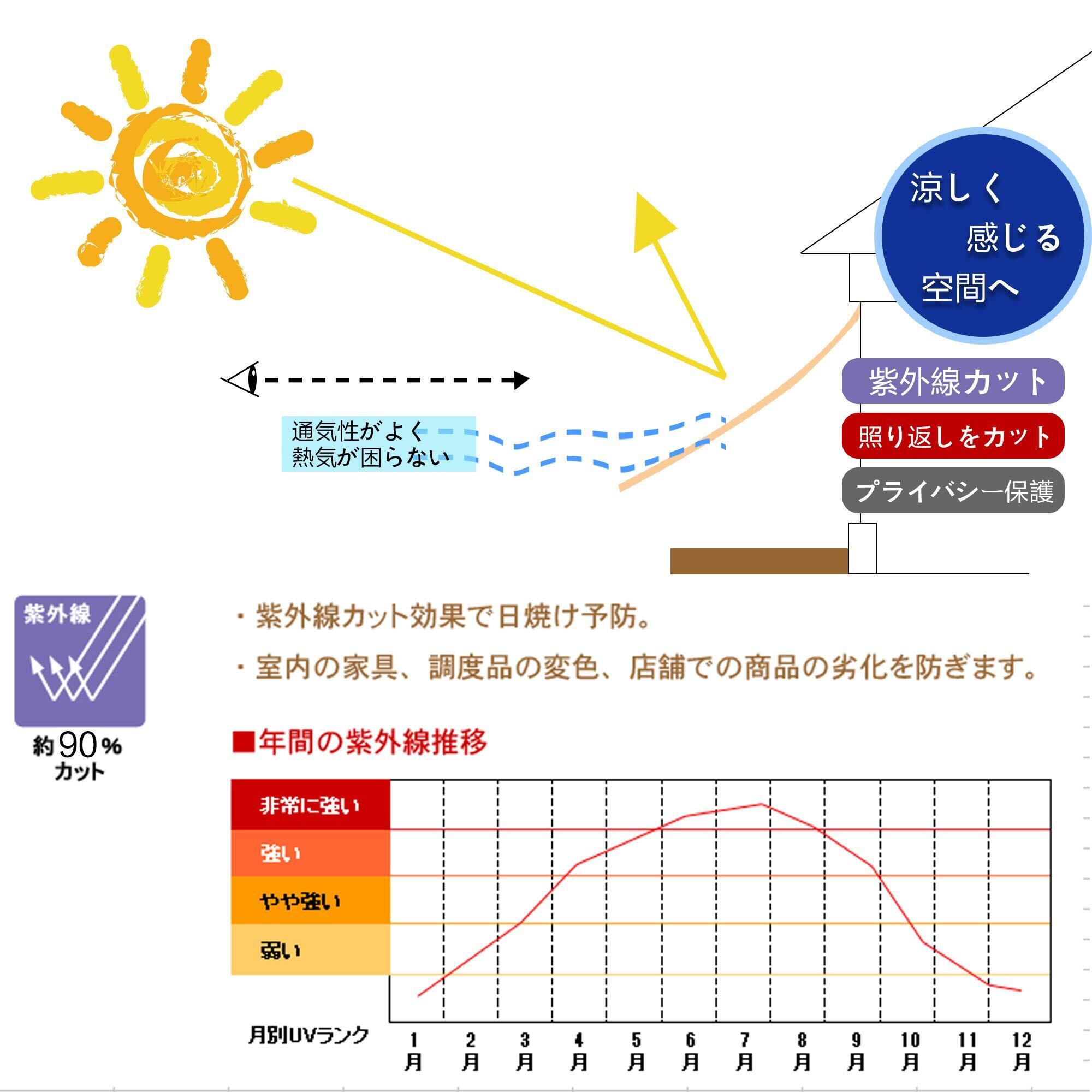 - 特徴:遮熱、UVカット、風通し良好、簡単取り付け