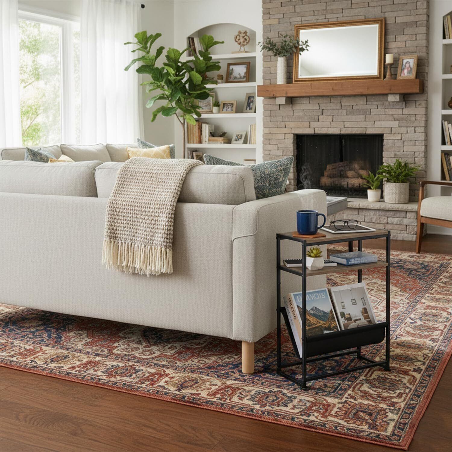 ZEXVIDA スリムサイドテーブル・雑誌架付き 幅43.2×奥行18×高さ55cm 収納棚 ラック 小さめ スリム ミニテーブル ベッドサイドテーブル ナイトテーブル ベッド横 コーヒーテーブル リビングサイドテーブル 雑誌テーブル コンパクトテーブル 木目調 (オーク) | Lulu
