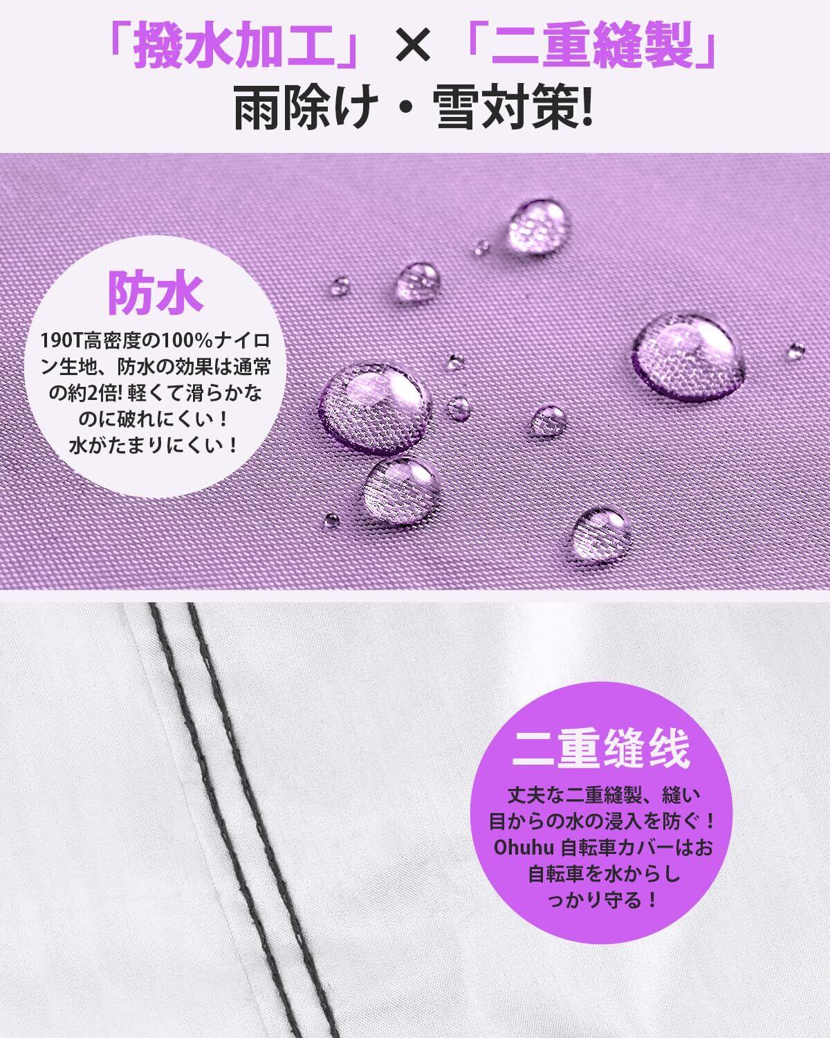 【しっかりとした厚手で安心感抜群!】Ohuhuの自転車カバーは、210T・190Tの高品質素材を使用しており、丈夫で破れにくい設計です。急な天候の変化にも安心して対応できる防水効果があり、長期間愛車をしっかりと保護します。